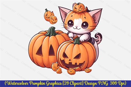 Watercolor, Pumpkin clipart, Graphics Design Bundle digital download cutting file for Cricut And Silhouette