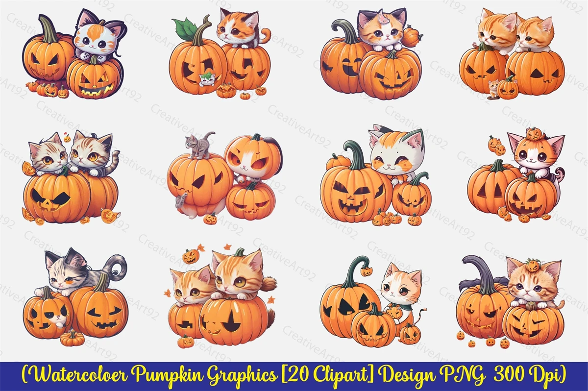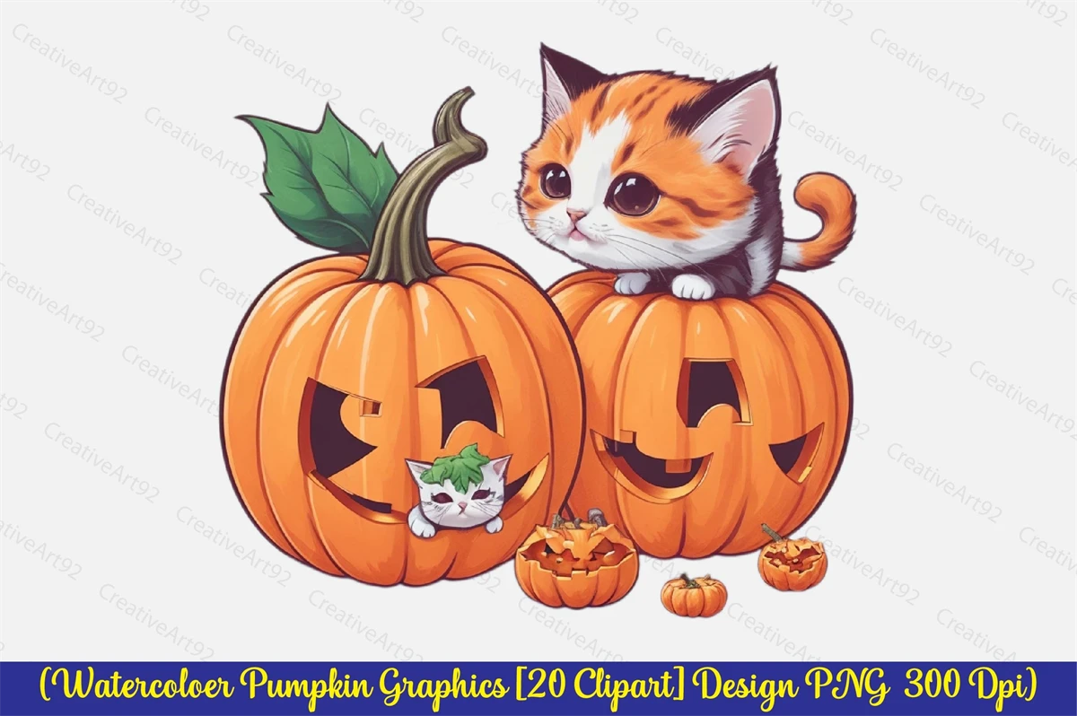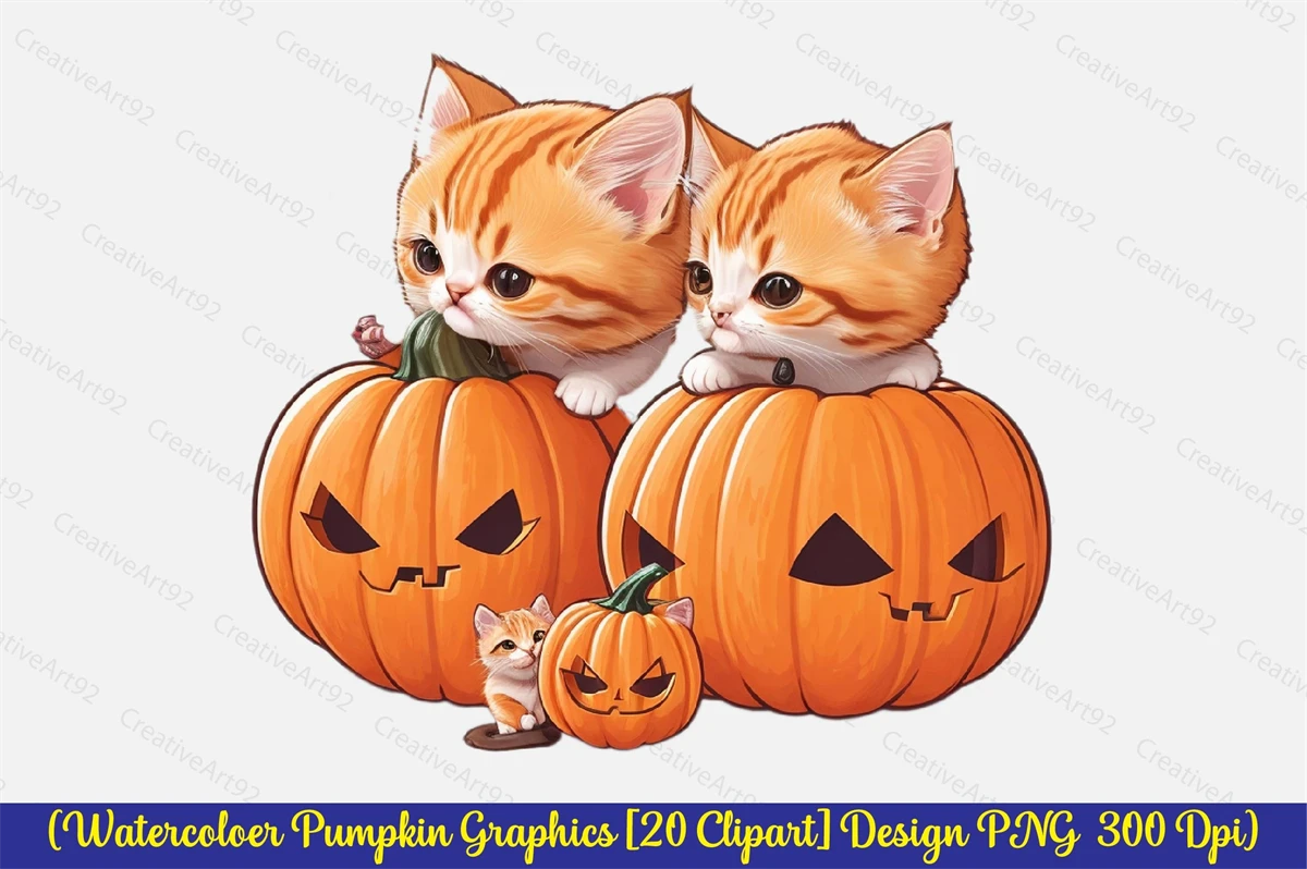 Watercolor, Pumpkin clipart, Graphics Design Single FILE INCLUDED: