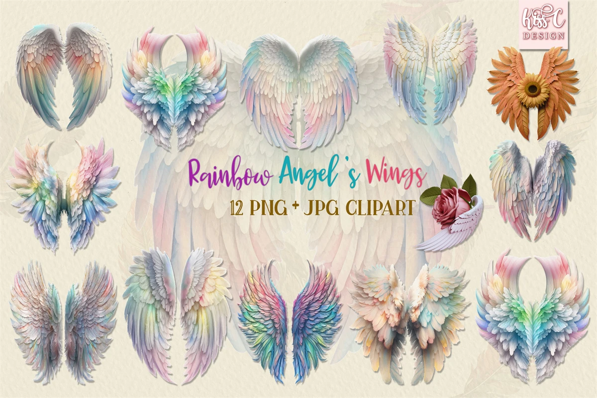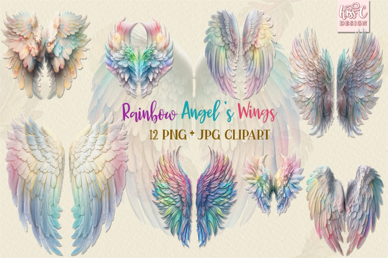 The Angels Wings Rainbow Watercolor Illustrations includes: