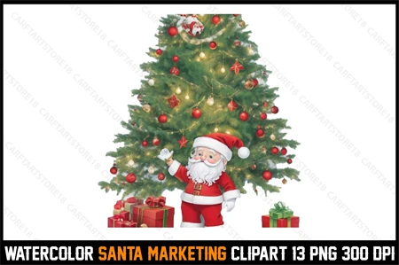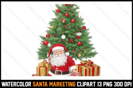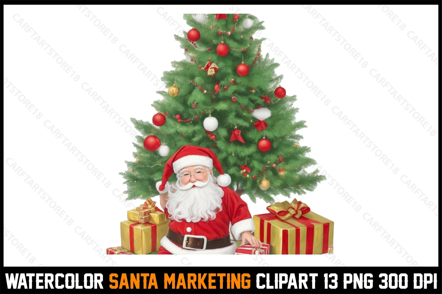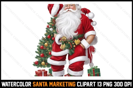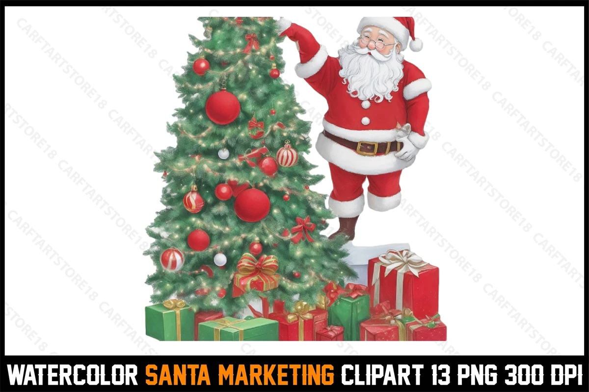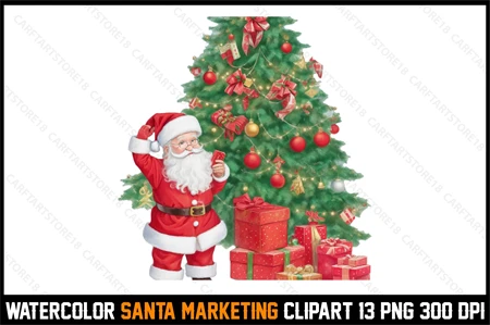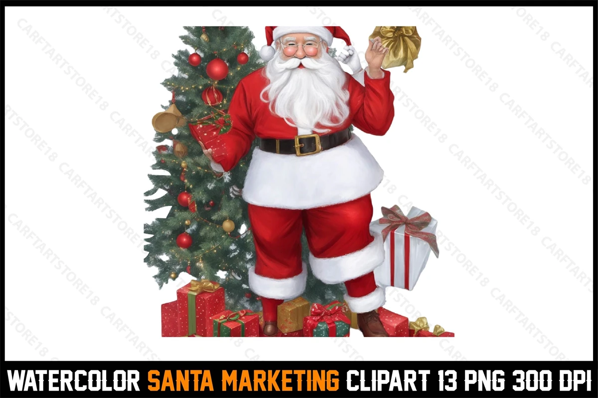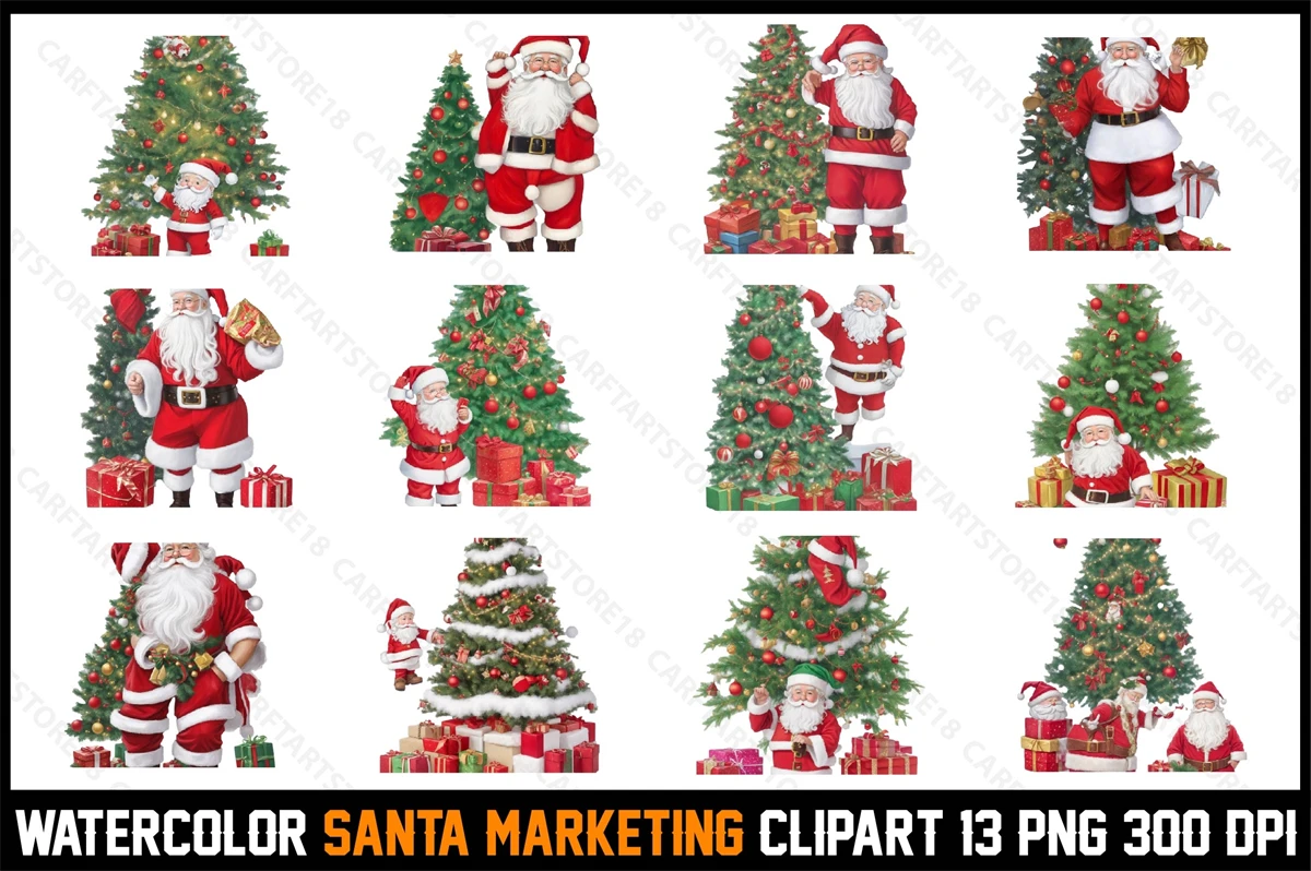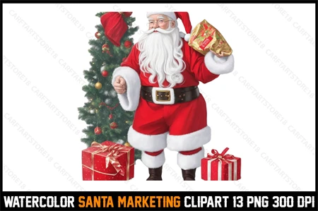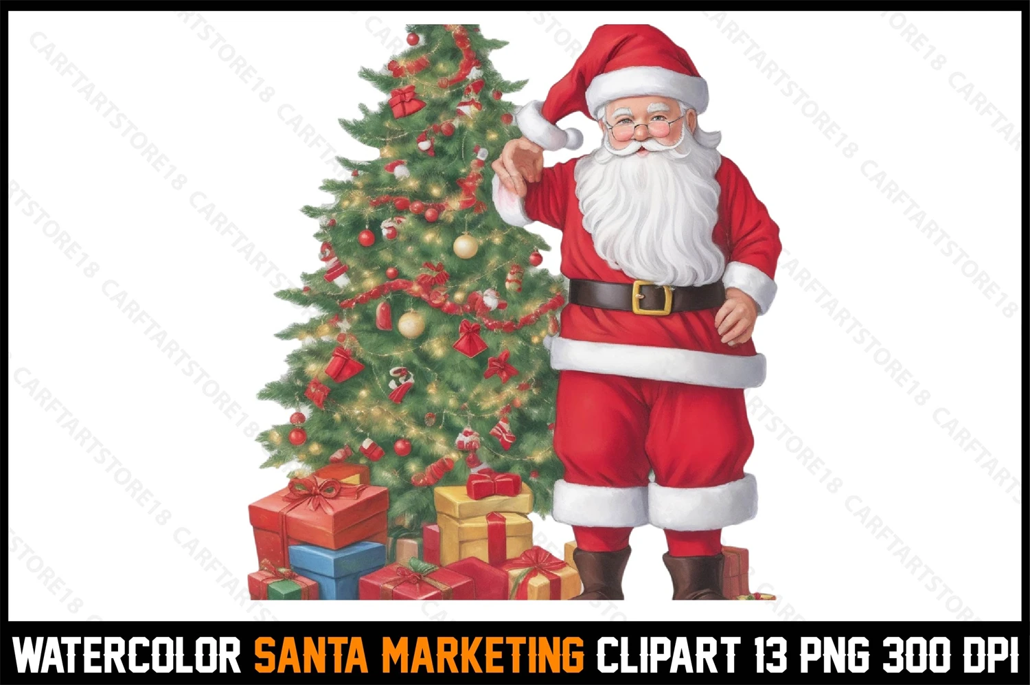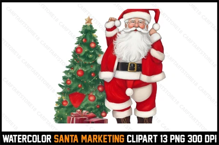 Watercolor Santa Marketing Clipart T-Shirt Design Bundle digital download cutting file for Circuit And Silhouette