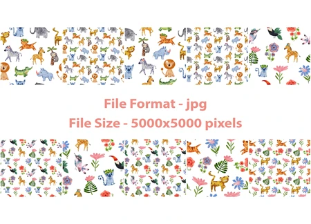 Includes seamless patterns with elements - ready to use. The format is jpg.