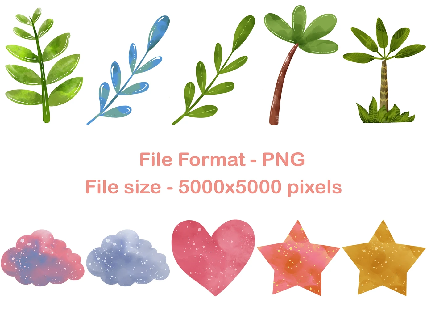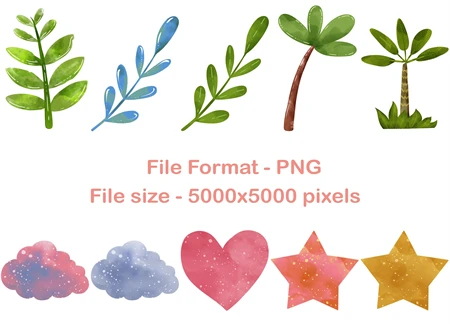 The size of all illustrations - inscribed in a square 5000x5000 pixels. Resolution - 300 dpi. Have fun using this watercolor set for your needs!