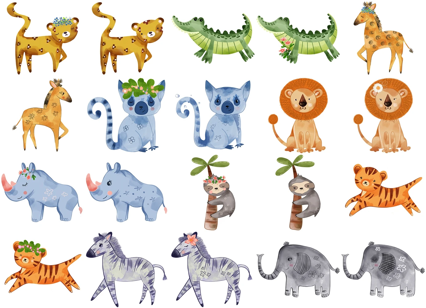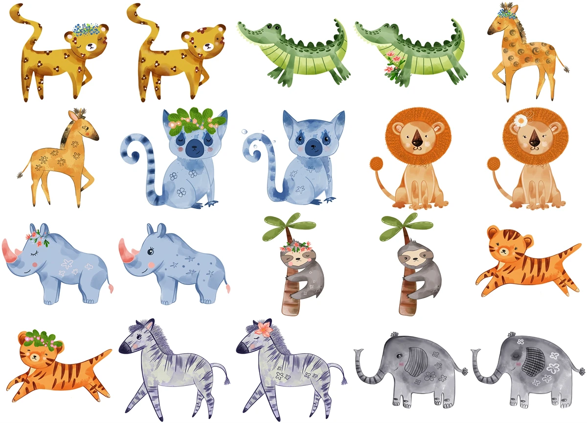Watercolour Set of Jungle Animals PNG