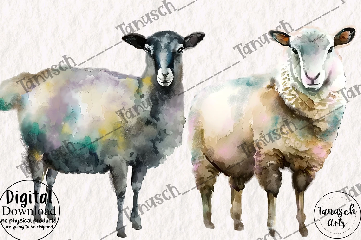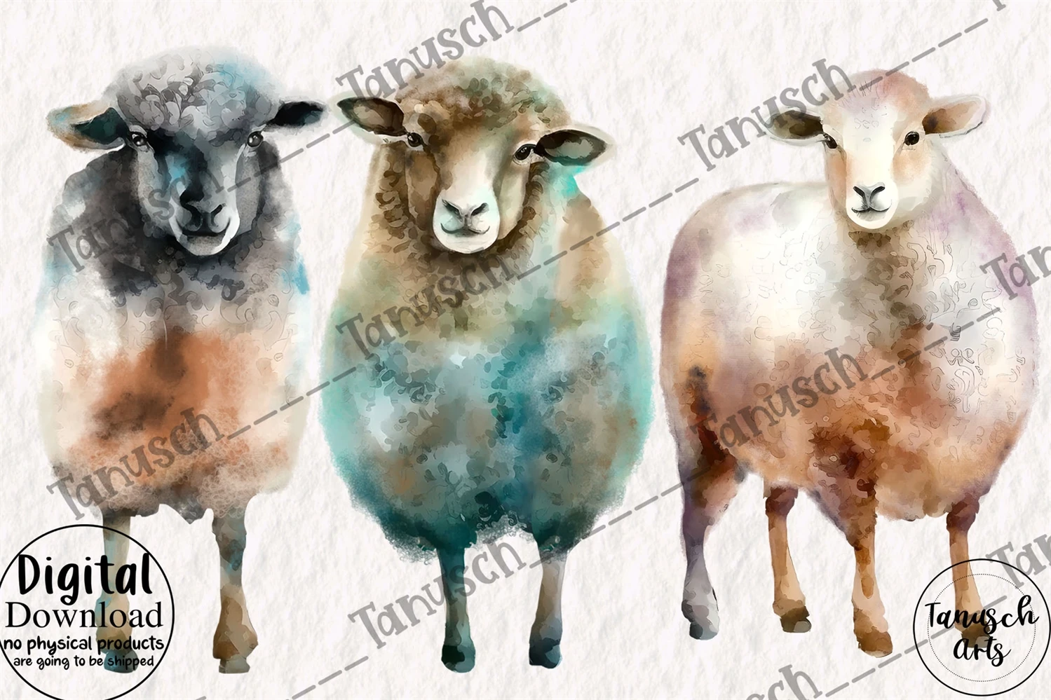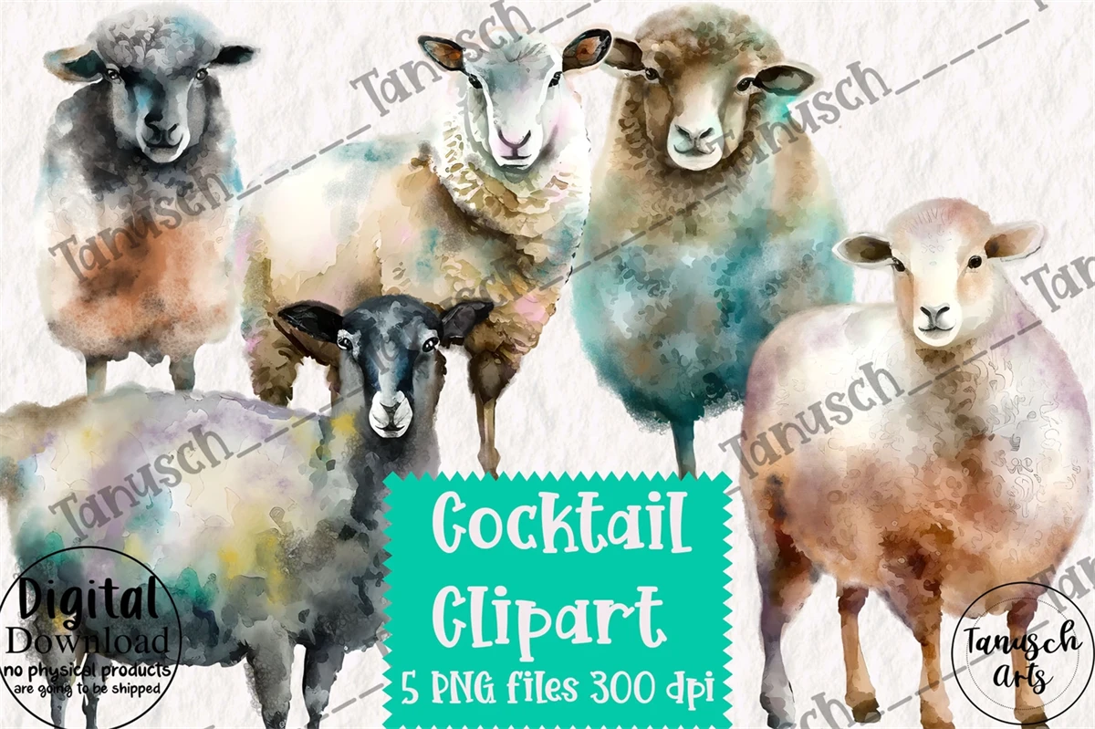 Hand painted cute and modern Watercolor and mixed Media Sheep Clipart Part 1