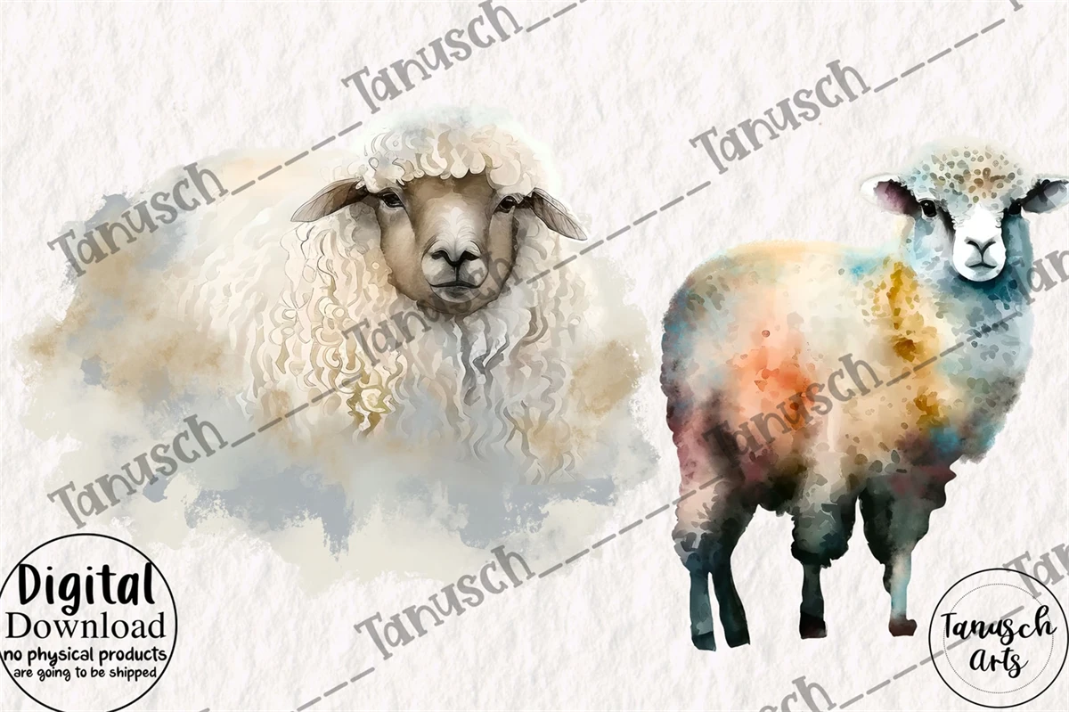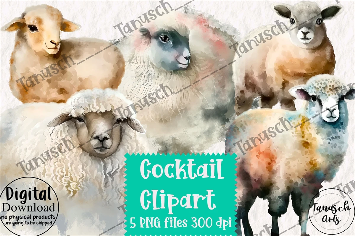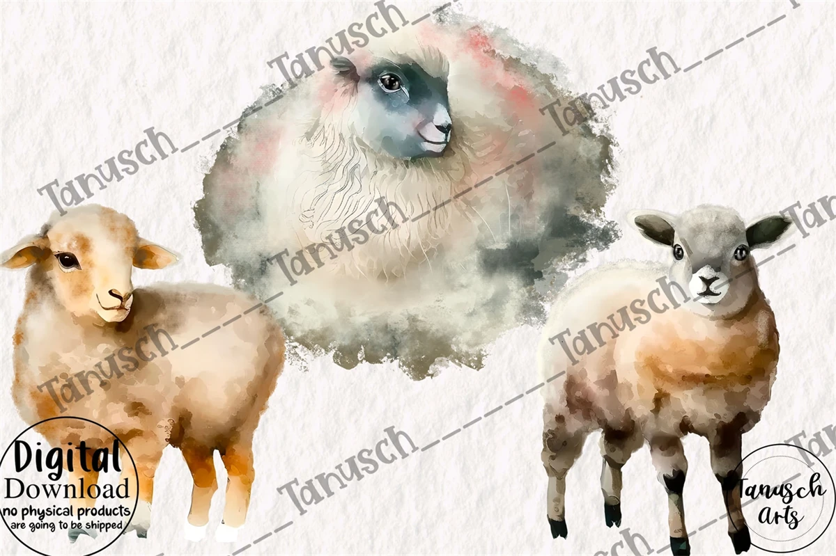 Hand painted cute and modern Watercolor and mixed Media Sheep Clipart Part 3