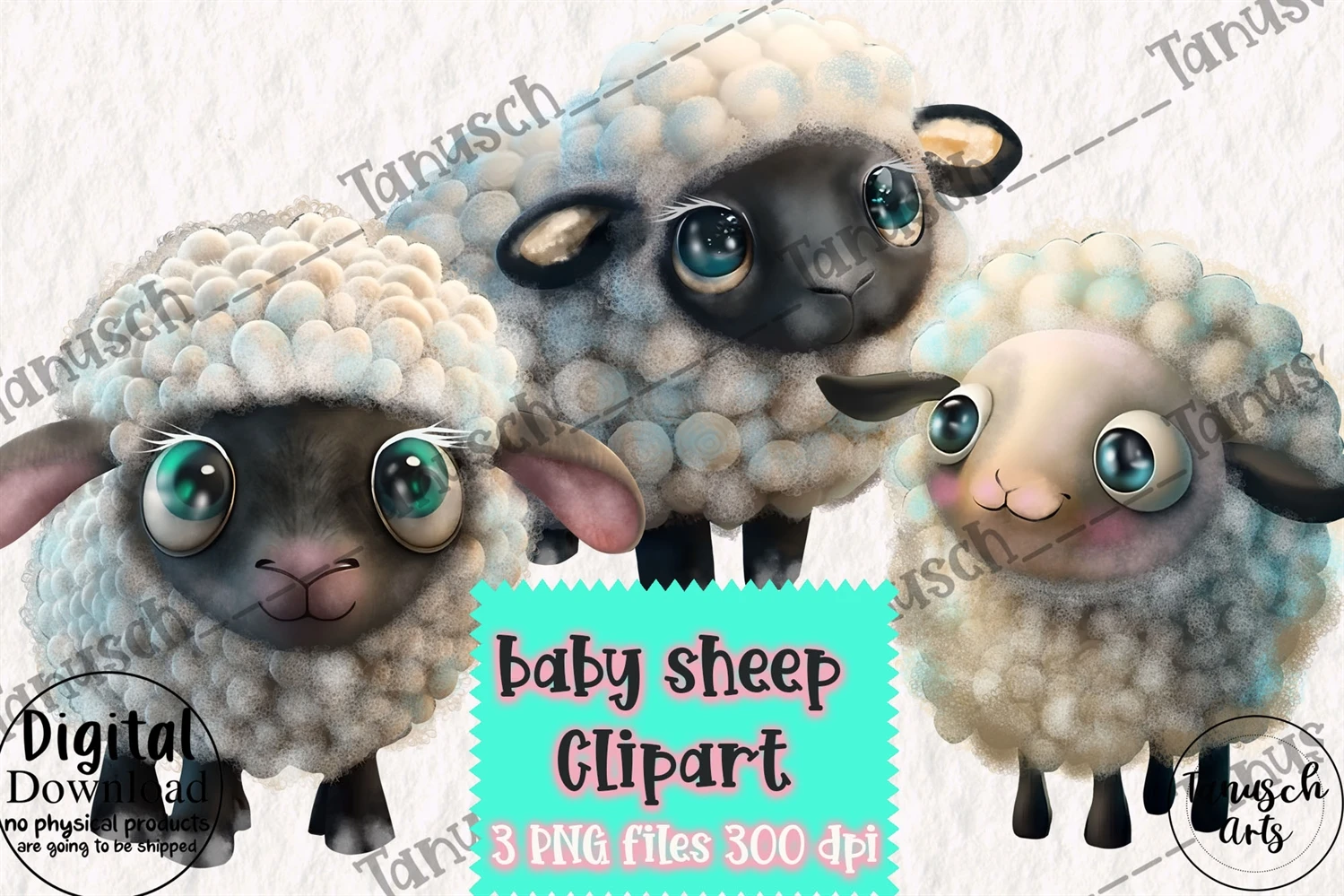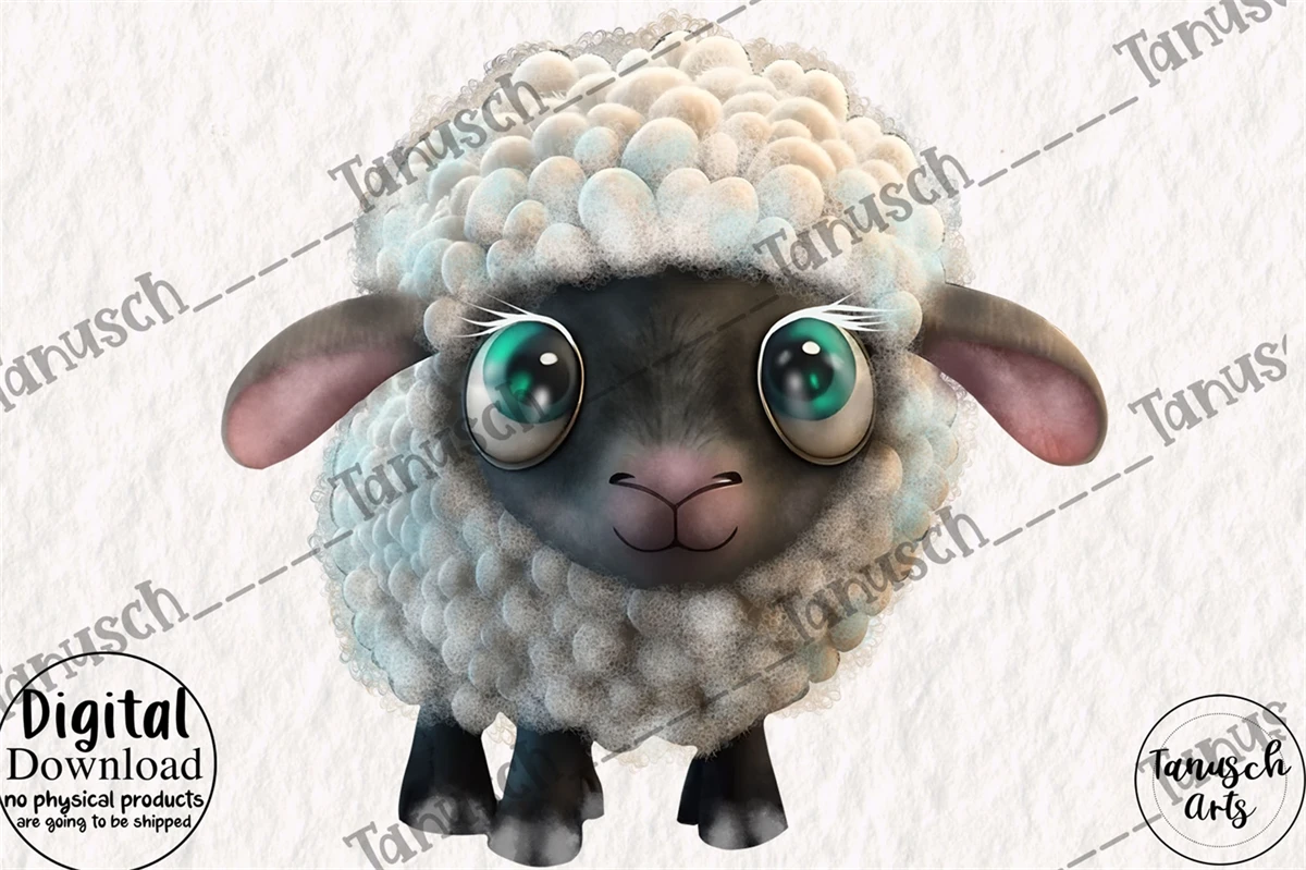 Hand painted cute and modern Watercolor and mixed Media Sheep Clipart Part 3
