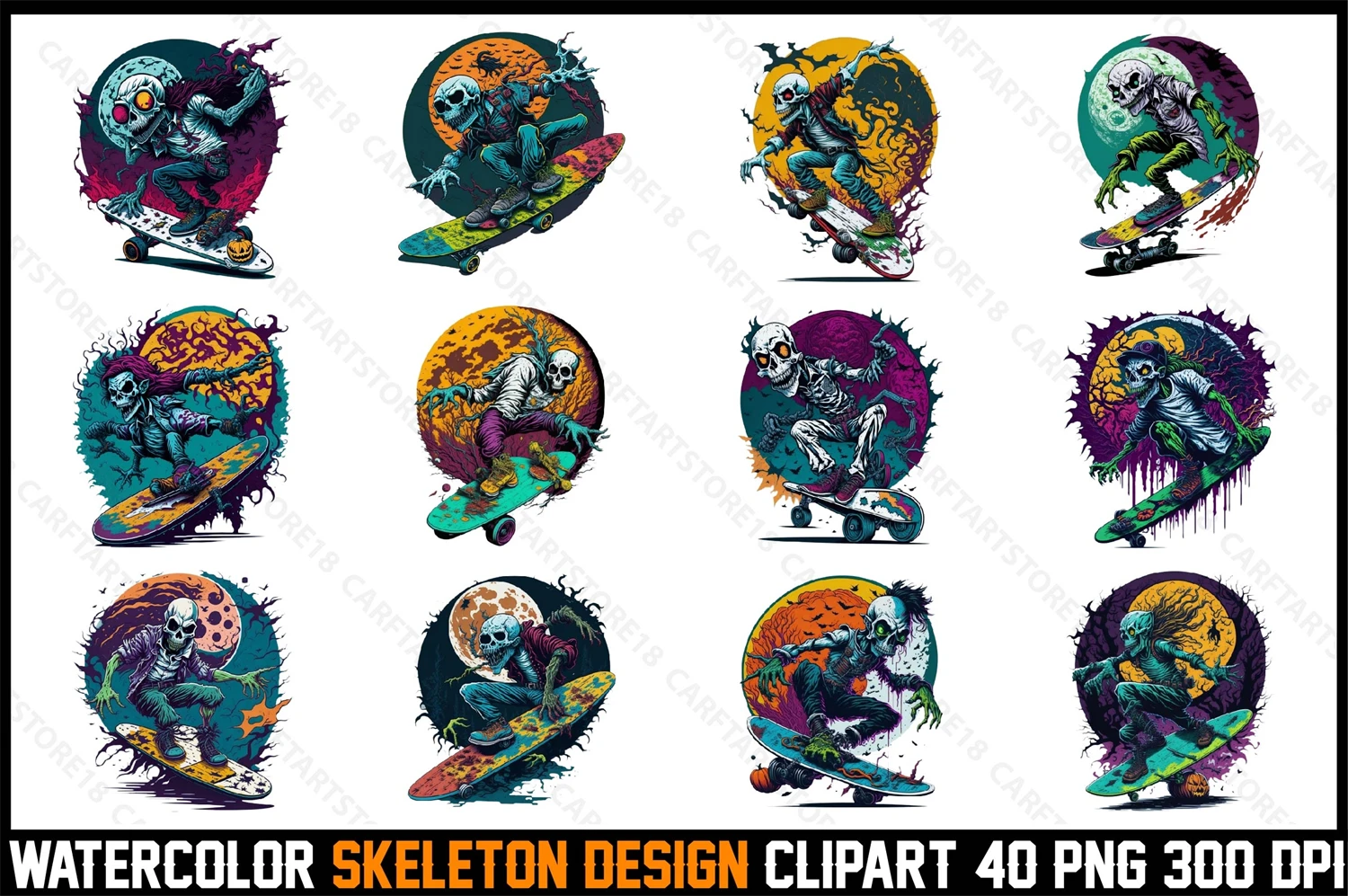 Watercolor Skeleton Design Clipart T-Shirt Design Bundle digital download cutting file for Circuit And Silhouette