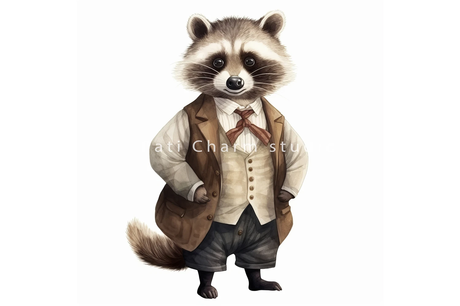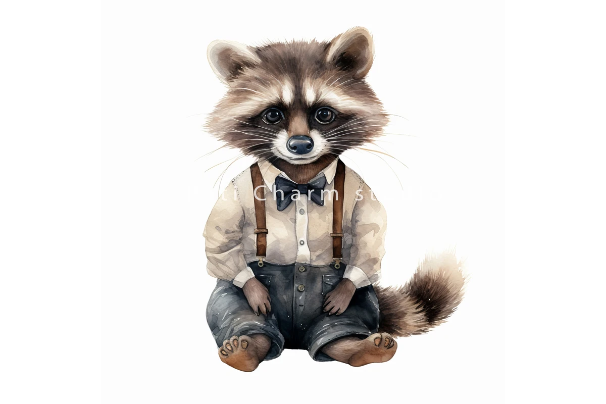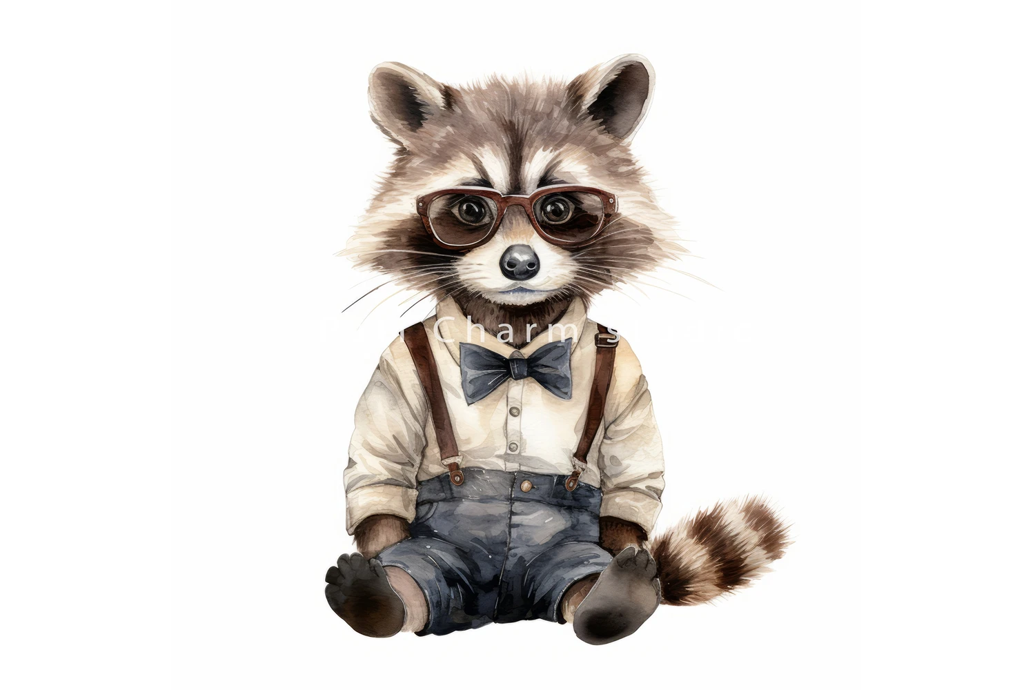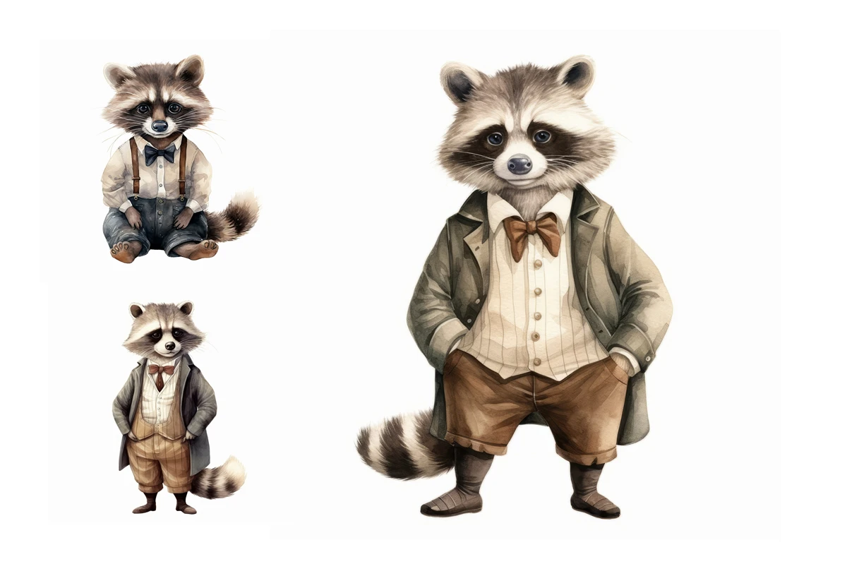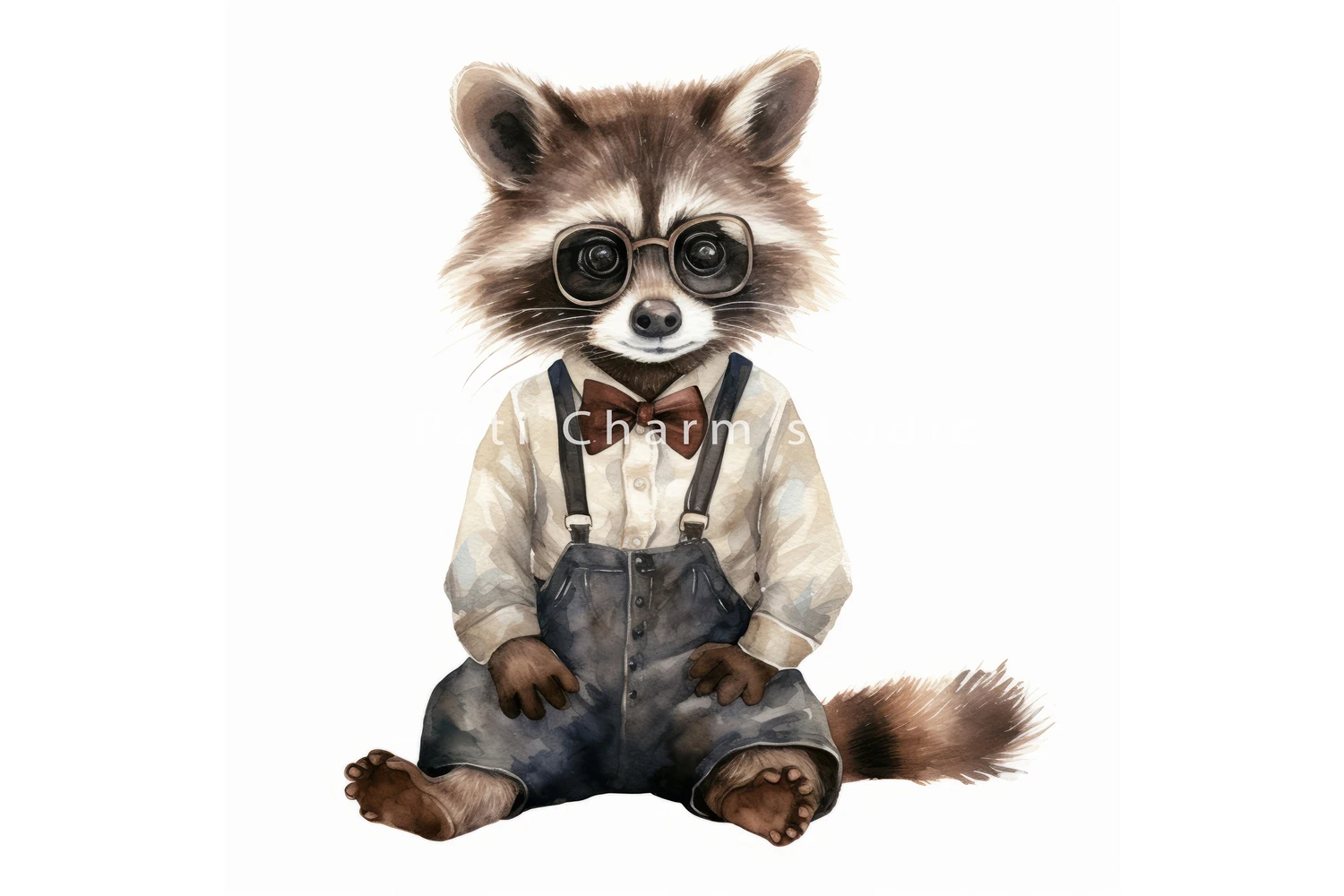 Watercolor Smart Raccoons Clipart 9 High Quality JPGs, Vintage Animal Illustration, Mixed Media, Digital Paper Craft, Baby Shower in Retro