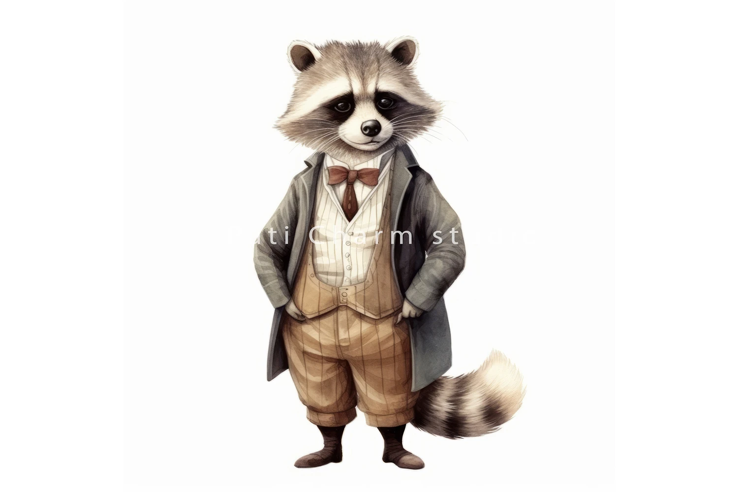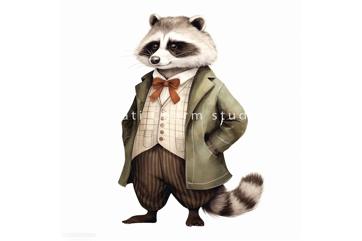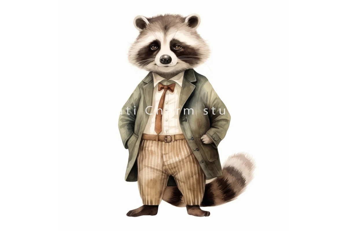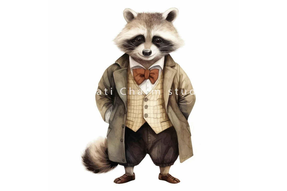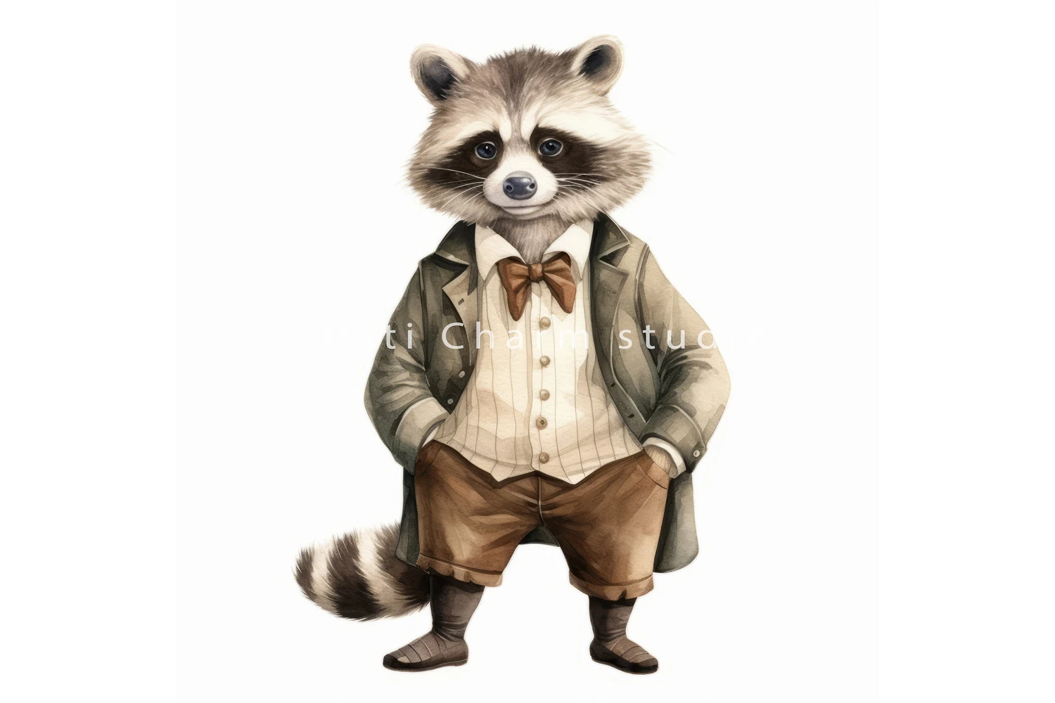 Watercolor Smart Raccoons Clipart 9 High Quality JPGs, Vintage Animal Illustration, Mixed Media, Digital Paper Craft, Baby Shower in Retro