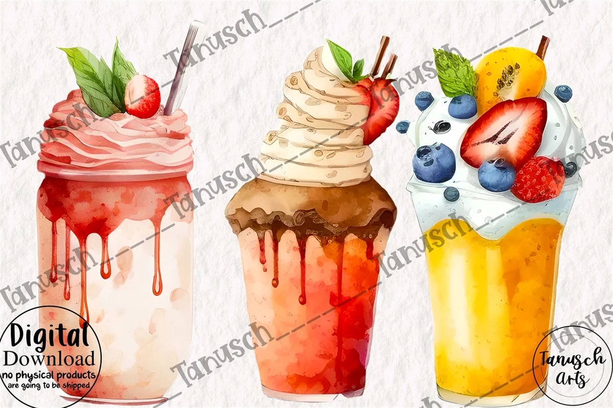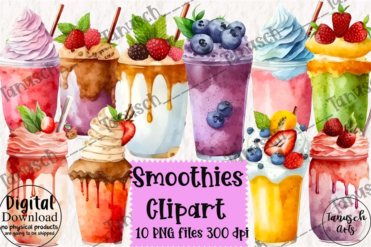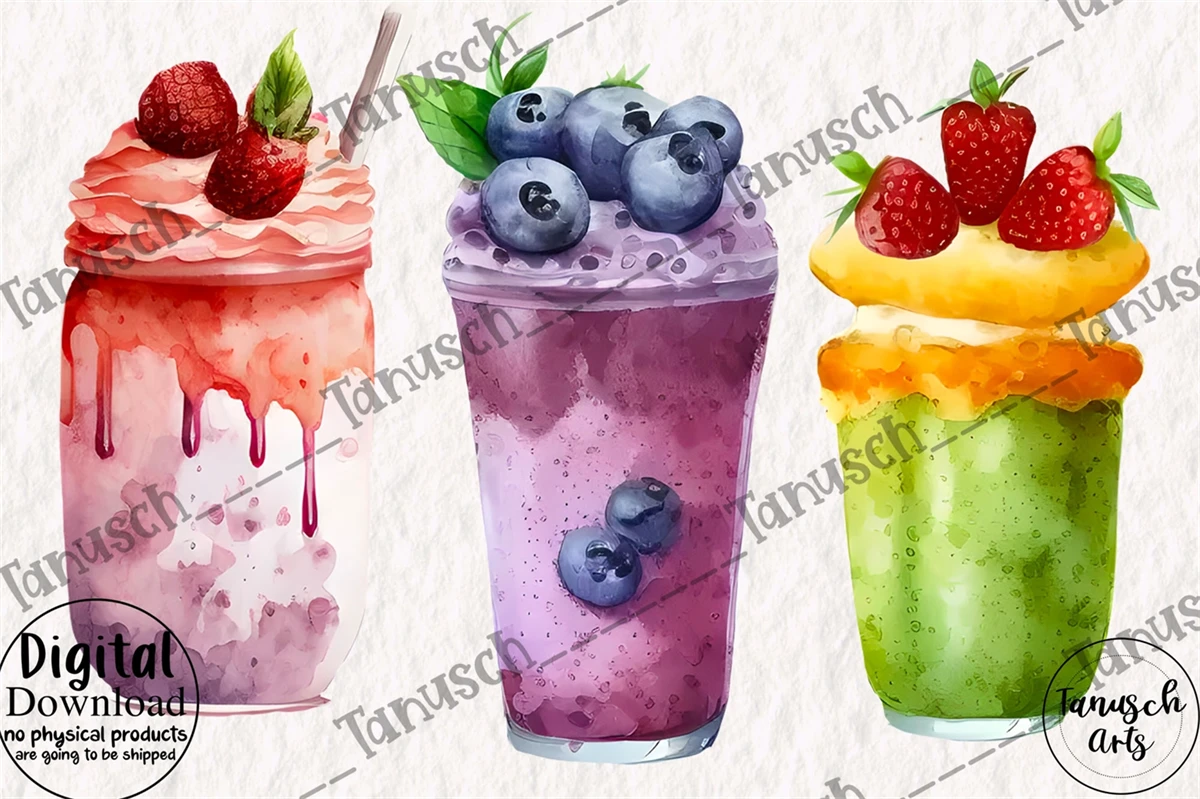 Handpainted cute and modern Watercolor and mixed Media Smoothies Clipart Part 2