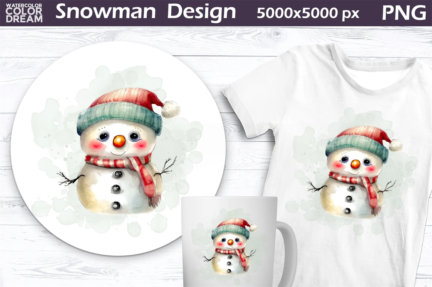Watercolor Snowman Illustration. Snowman Sublimation Design