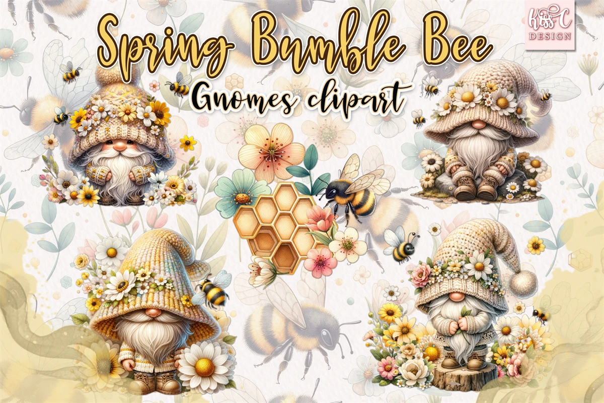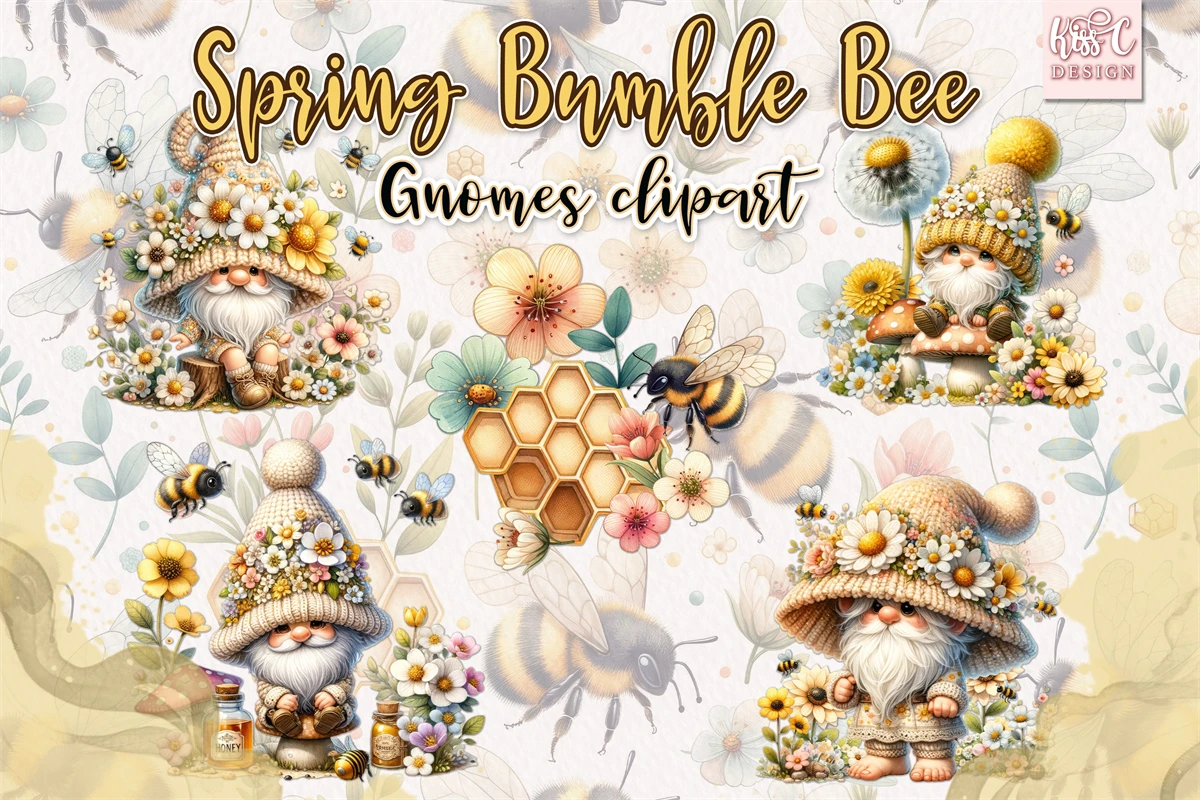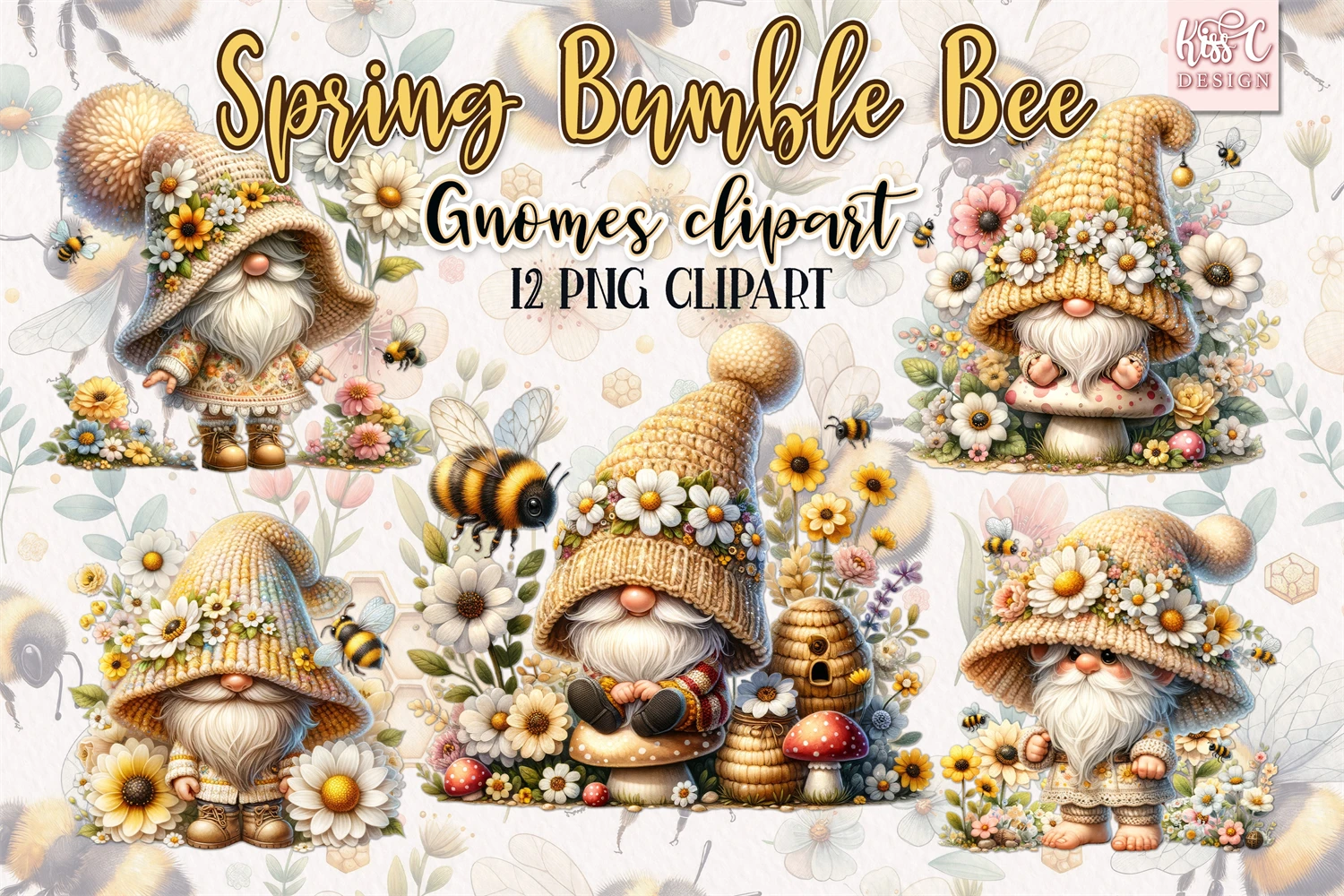 Introducing our adorable collection of Spring Bumble Bee Gnomes Clipart!