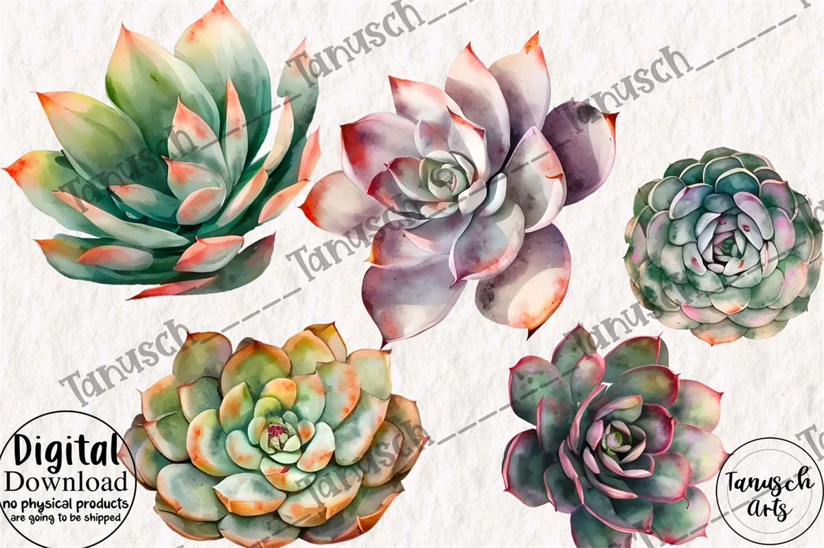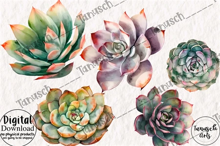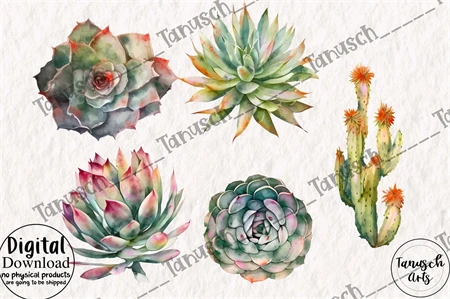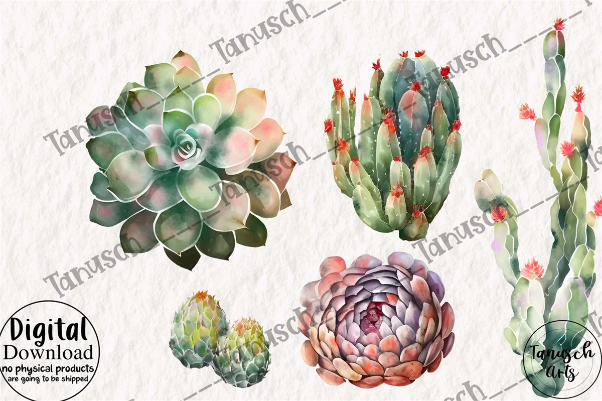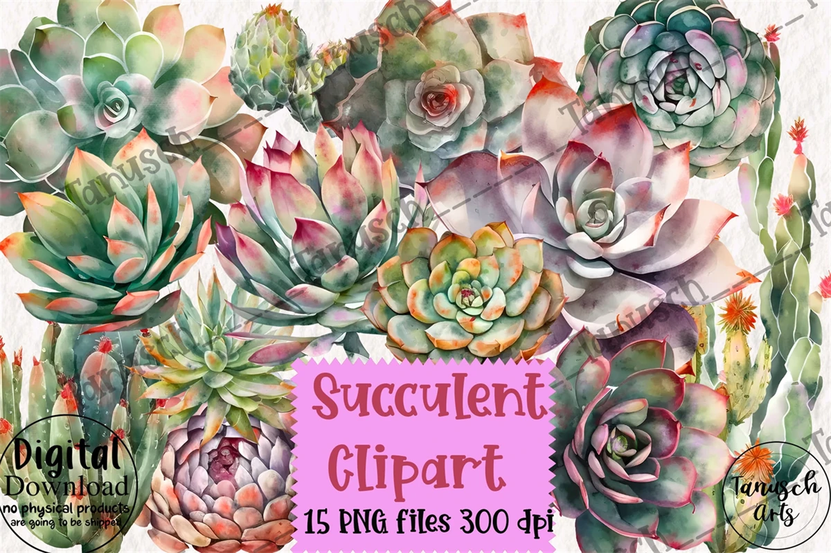 Handpainted cute and modern Watercolor and mixed Media Succulents & Cactus Clipart Part 1