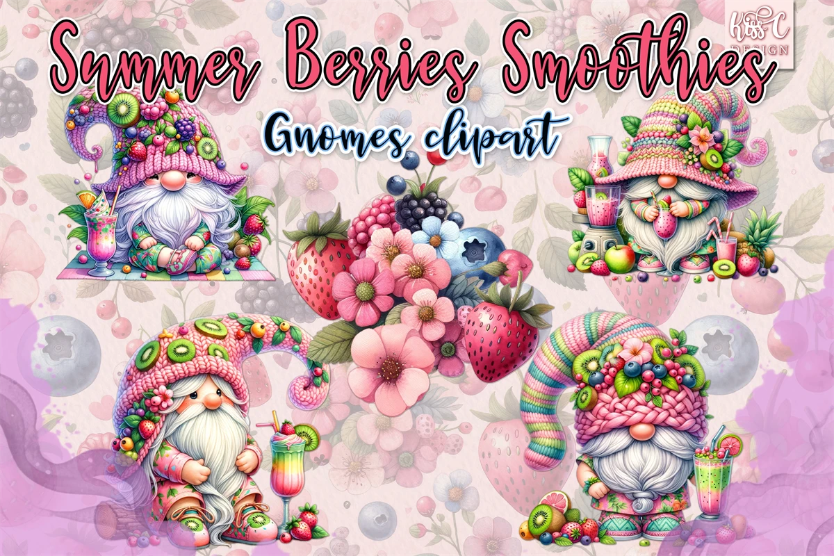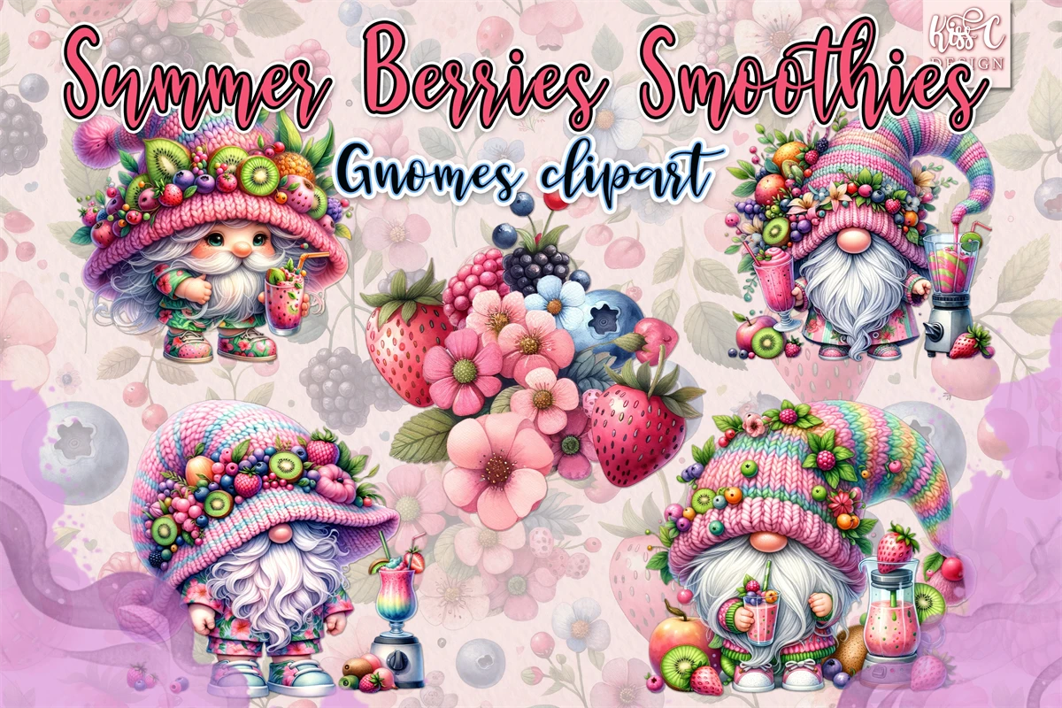 Introducing our adorable Summer Berries Smoothie Gnome illustrations.
