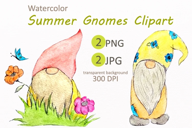 Watercolor Summer gnomes.Summer gnomes.Gnome Clipart.Clipart Summer Gnome Png.Summer gnomes Clipart.