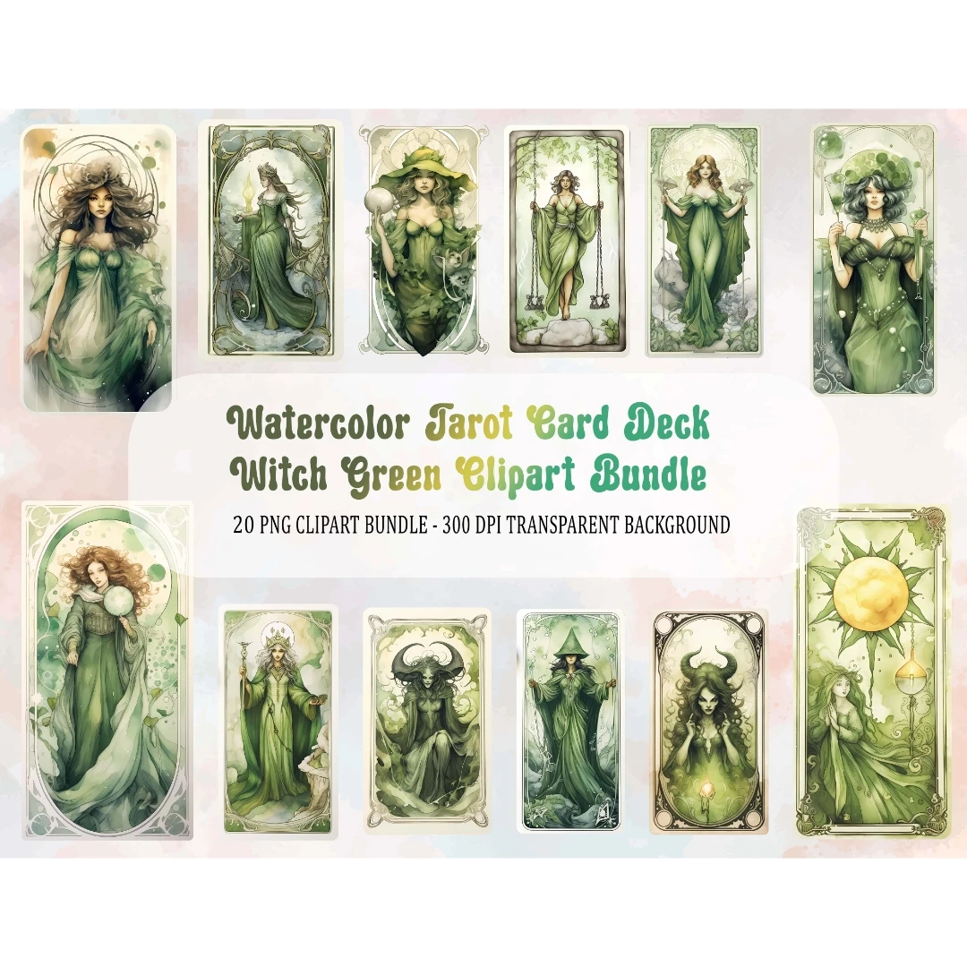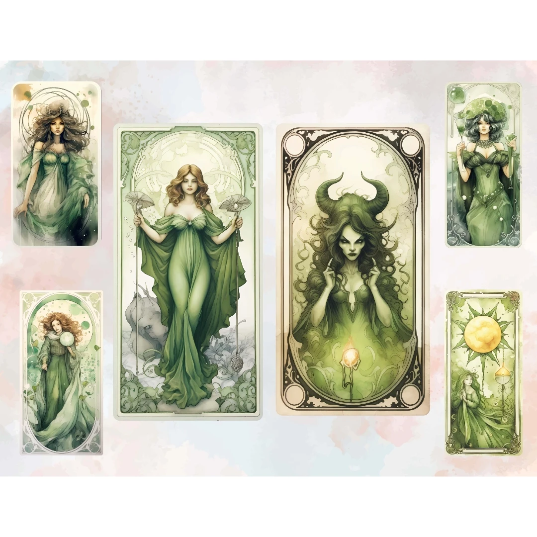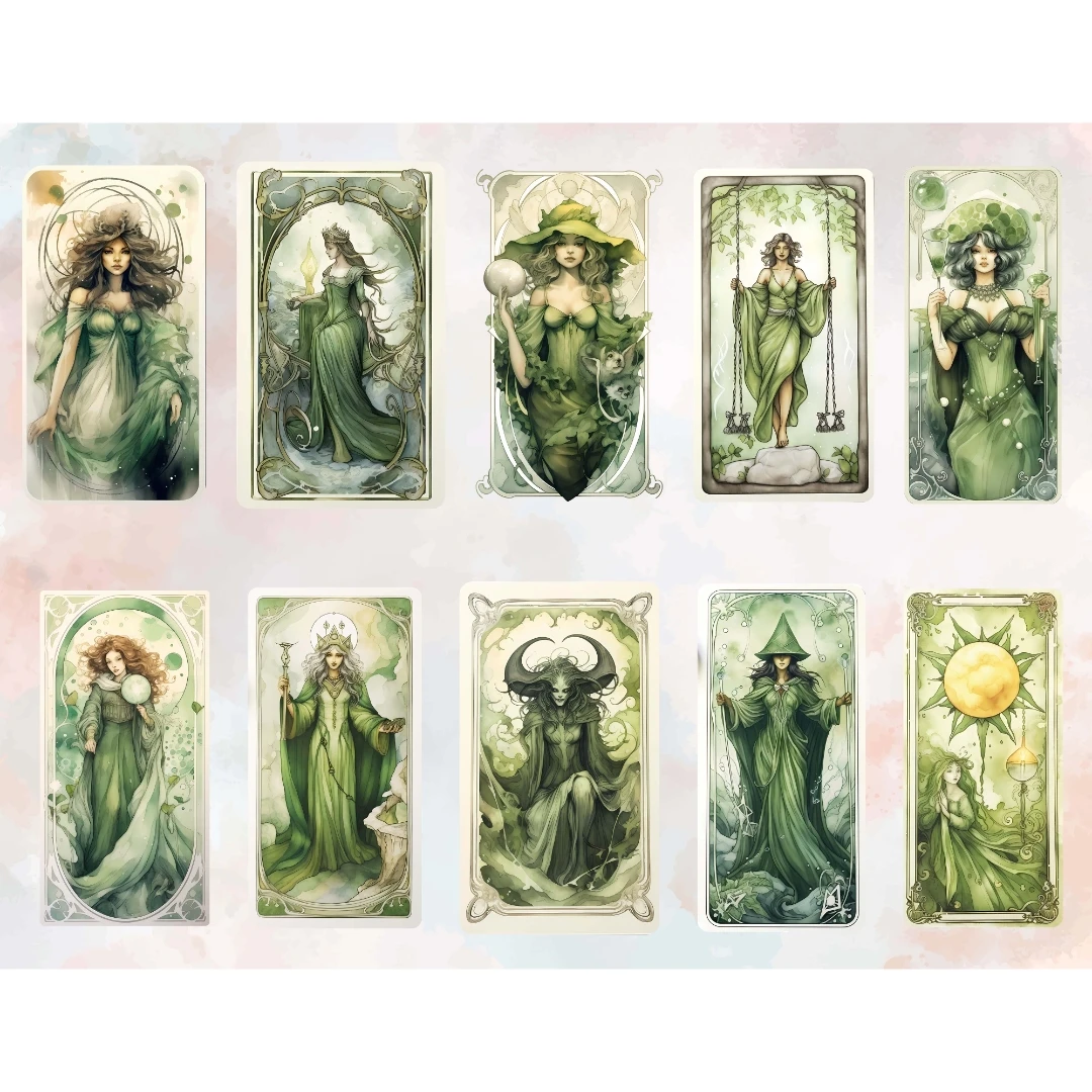 Watercolor Tarot Card Deck Witch Green Neutral