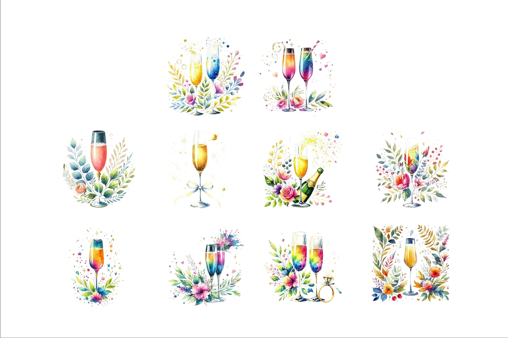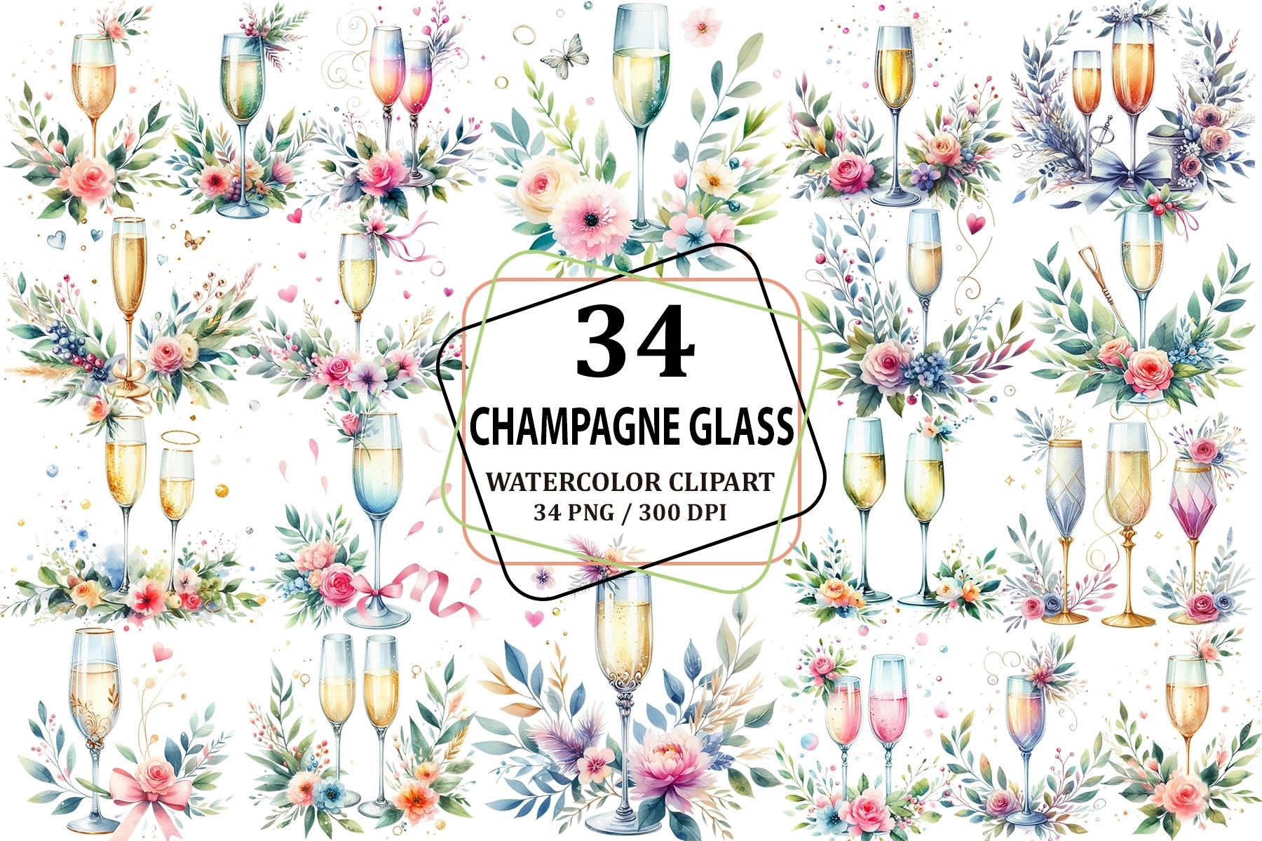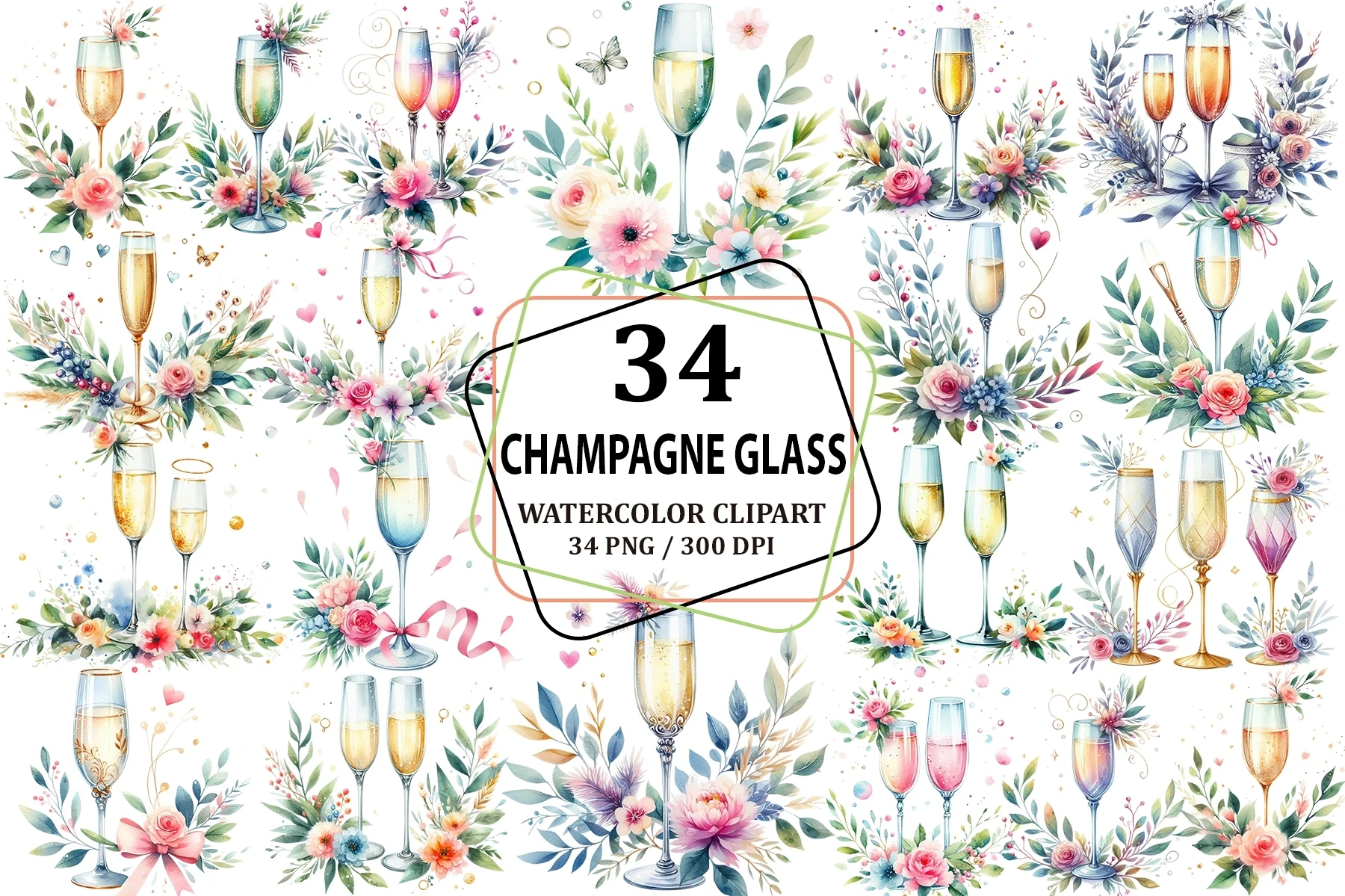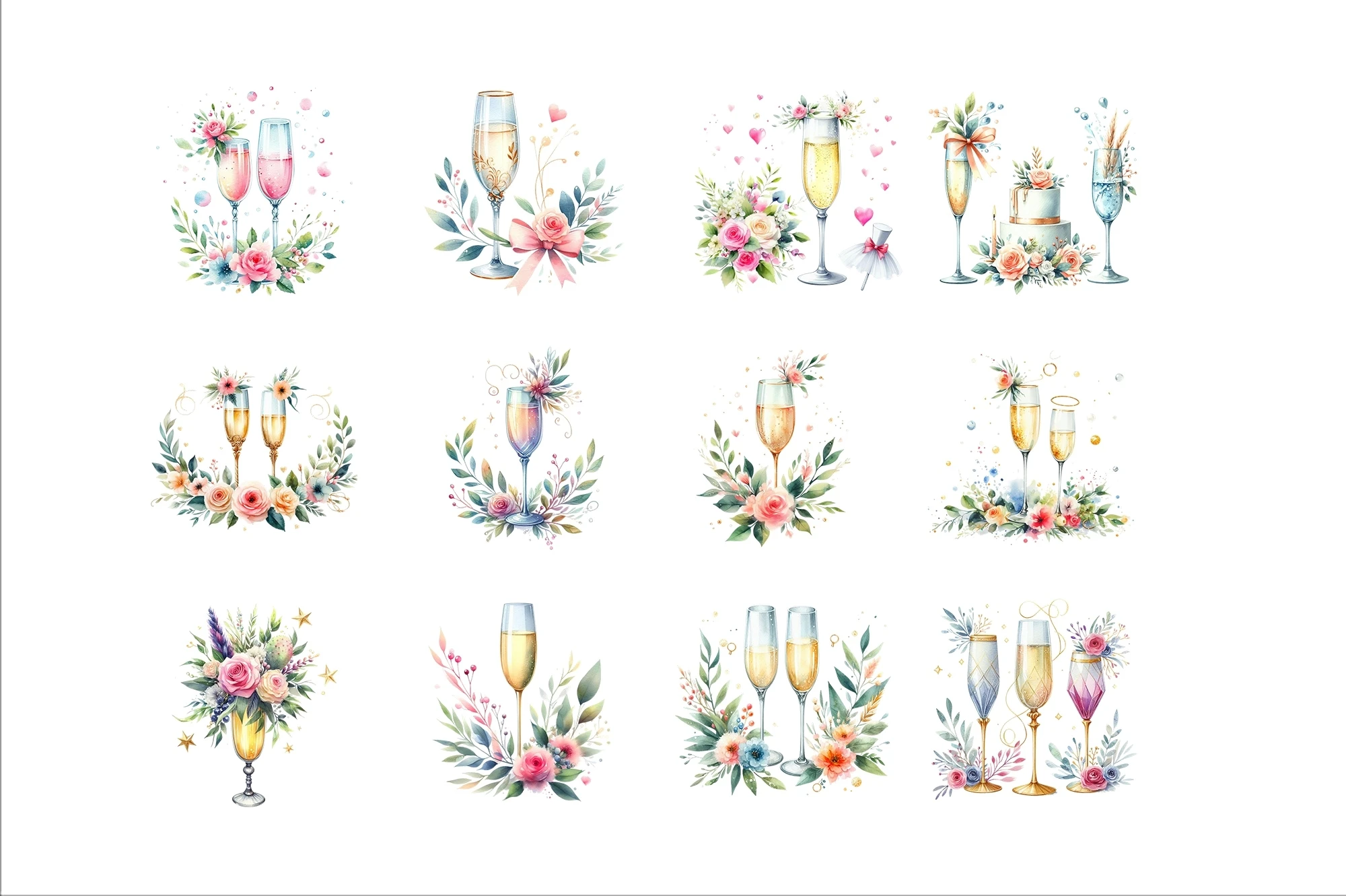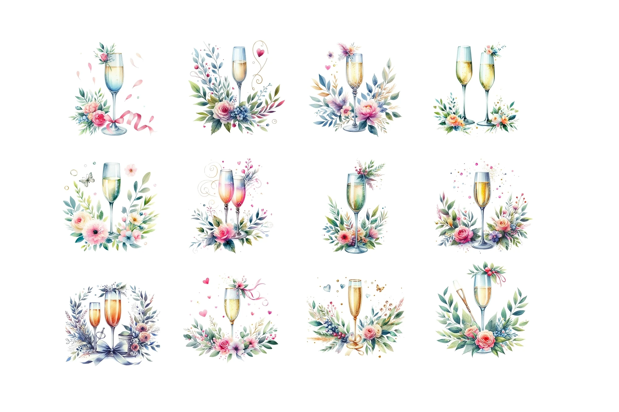 Watercolor Wedding Champagne Glass Clipart PNG (AI-generated).