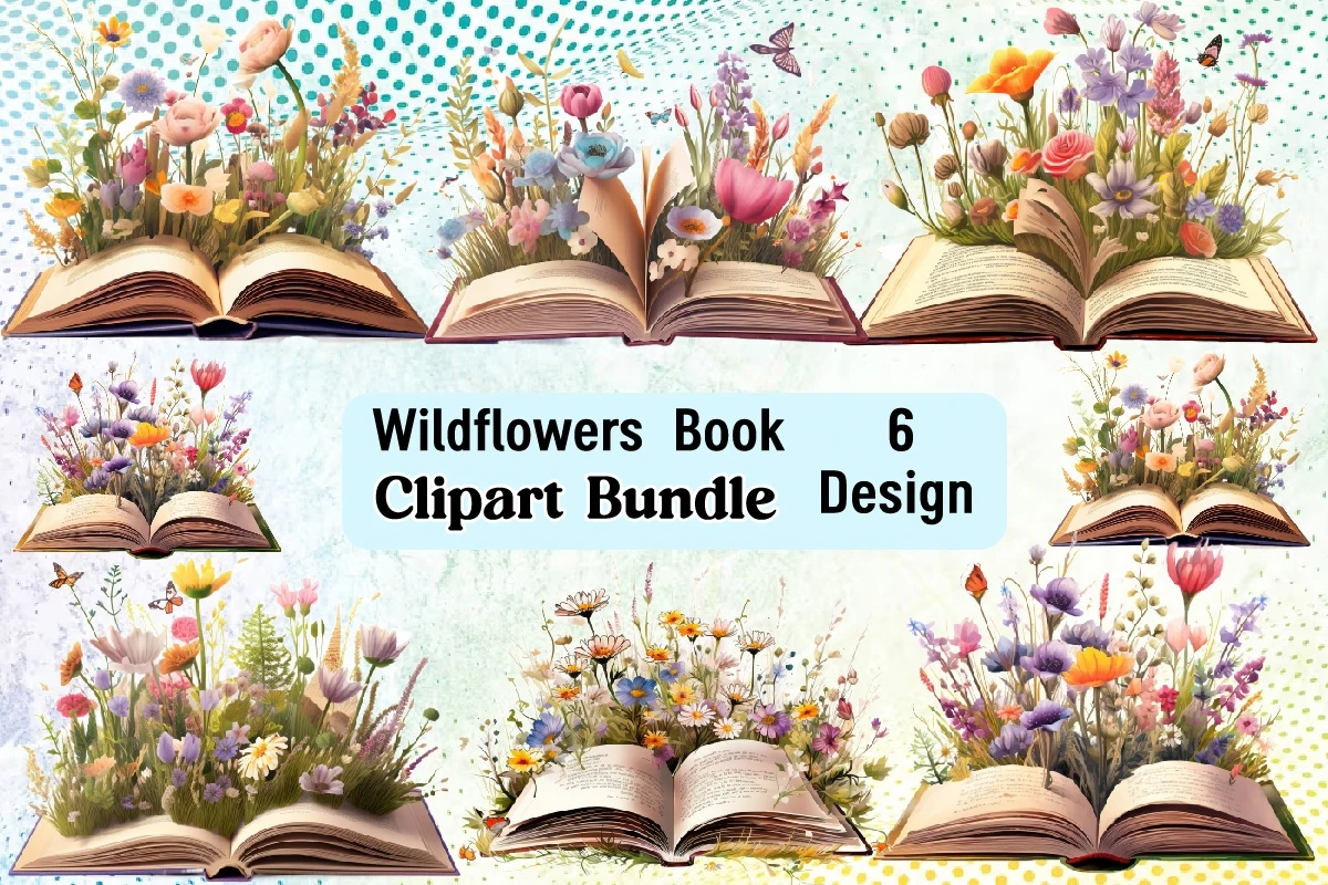 Watercolor Wildflowers Book PNG Sublimation Bundle