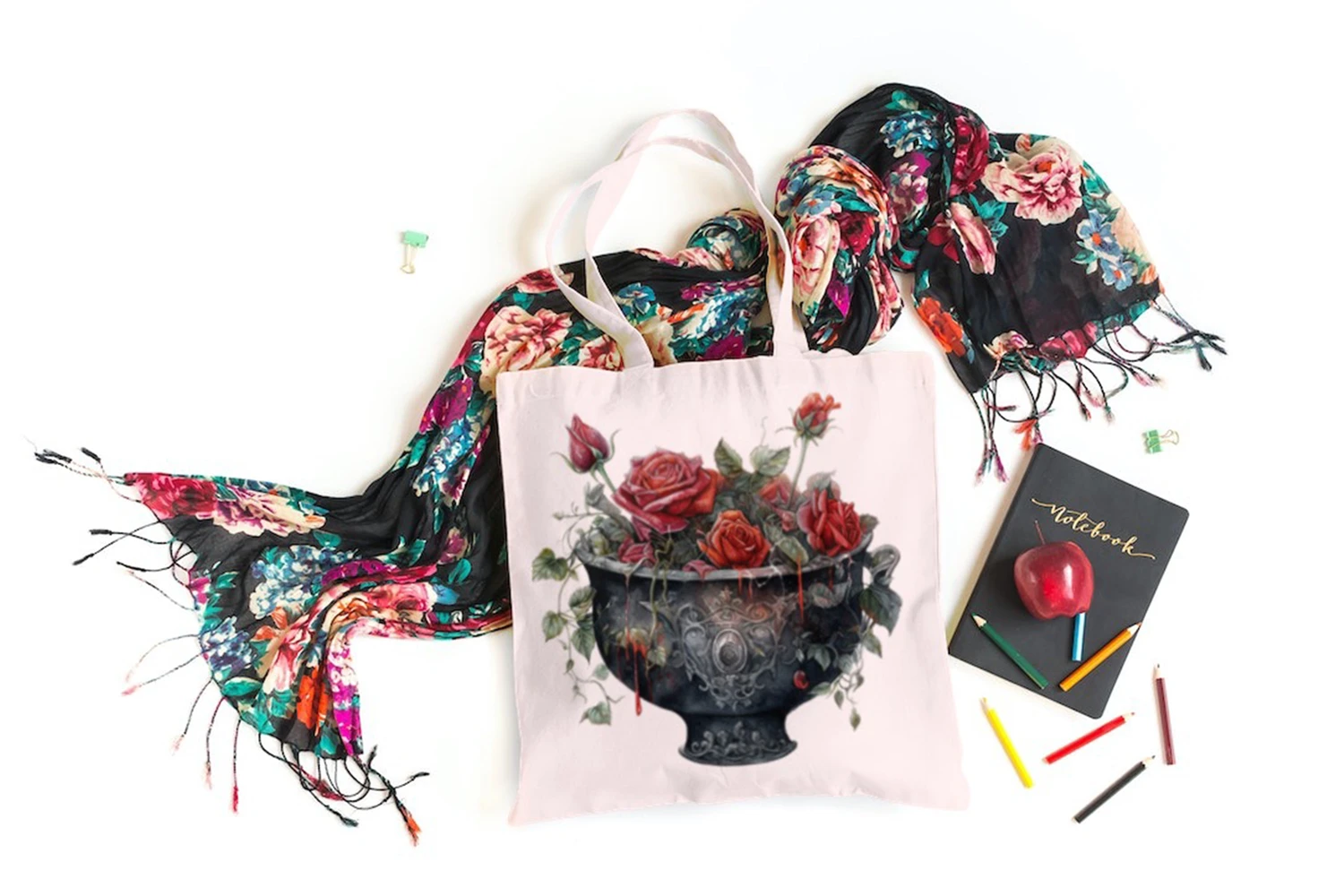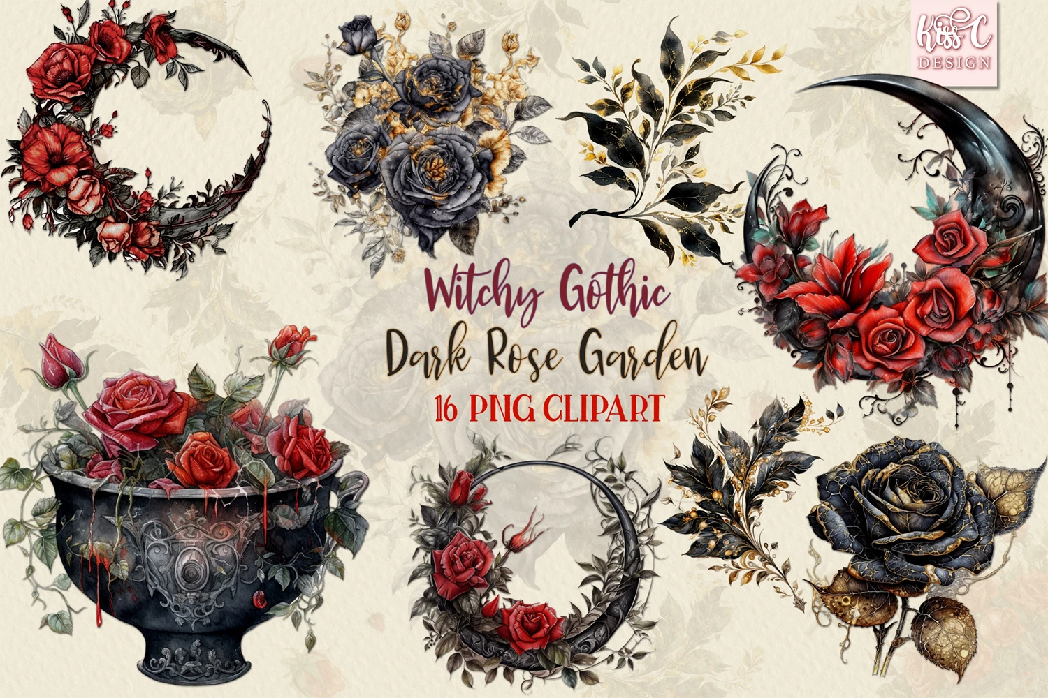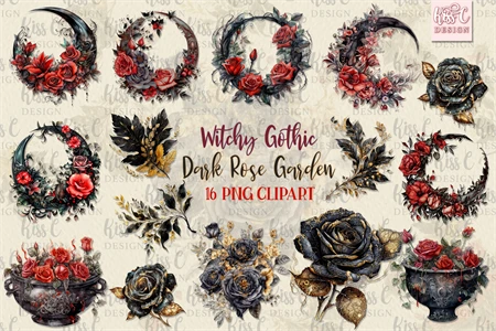 Witchy Gothic Dark Roses Garden Watercolor Illustration PNG Sublimation