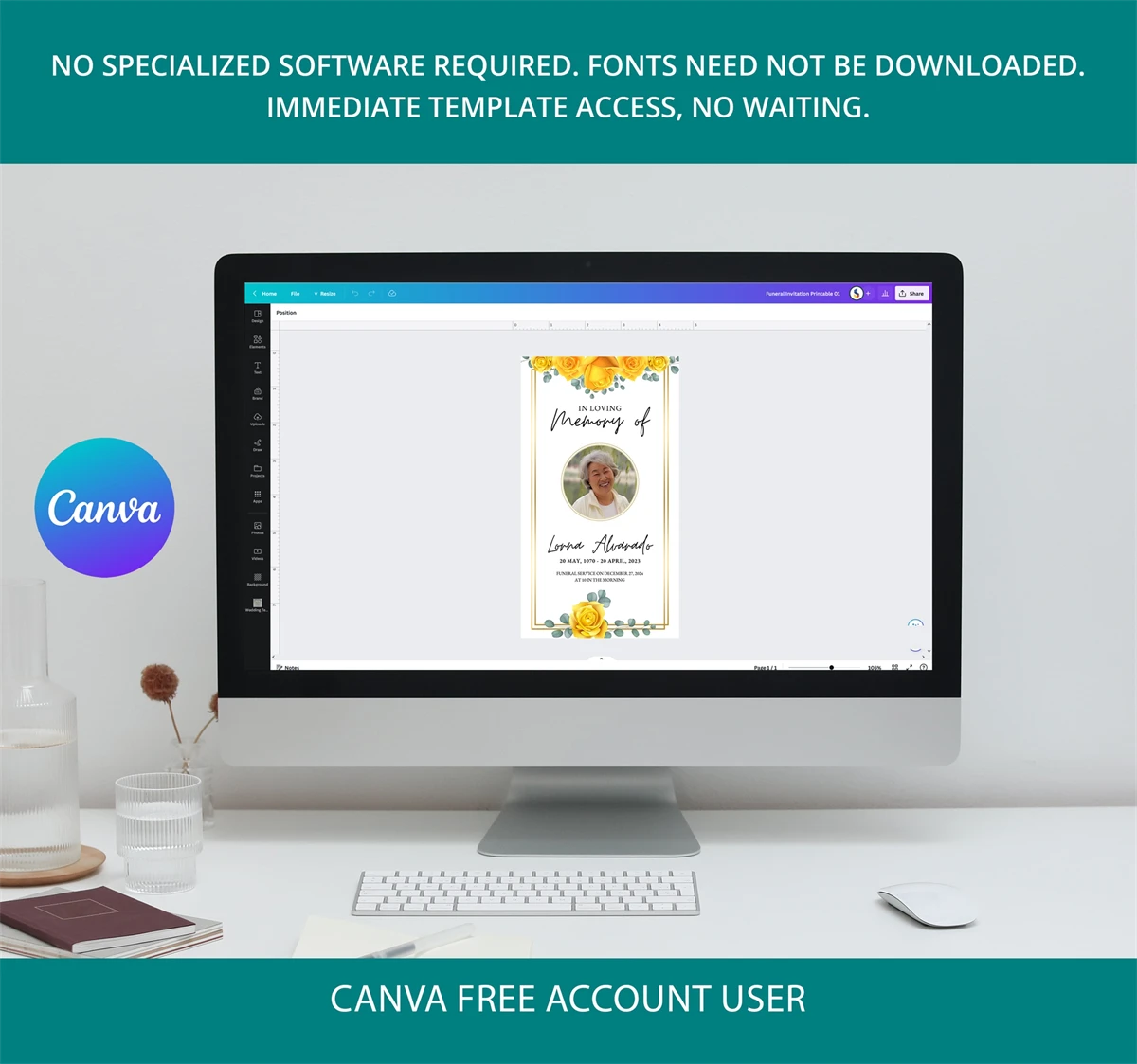 Immediate template access, no waiting. Canva FREE account.