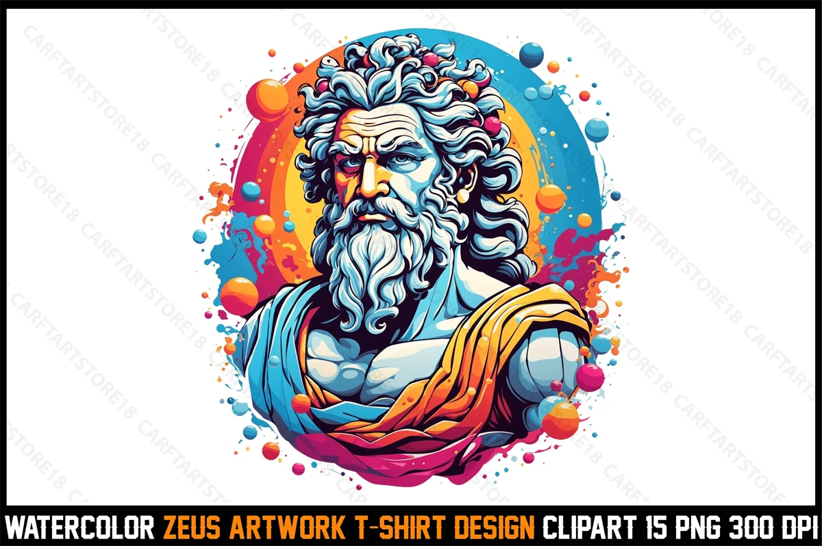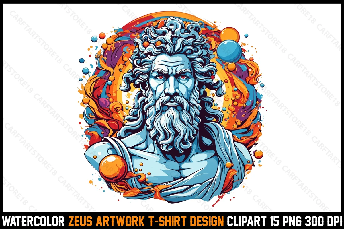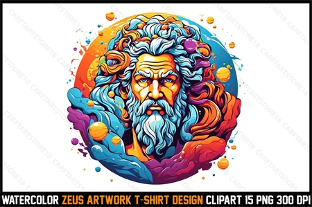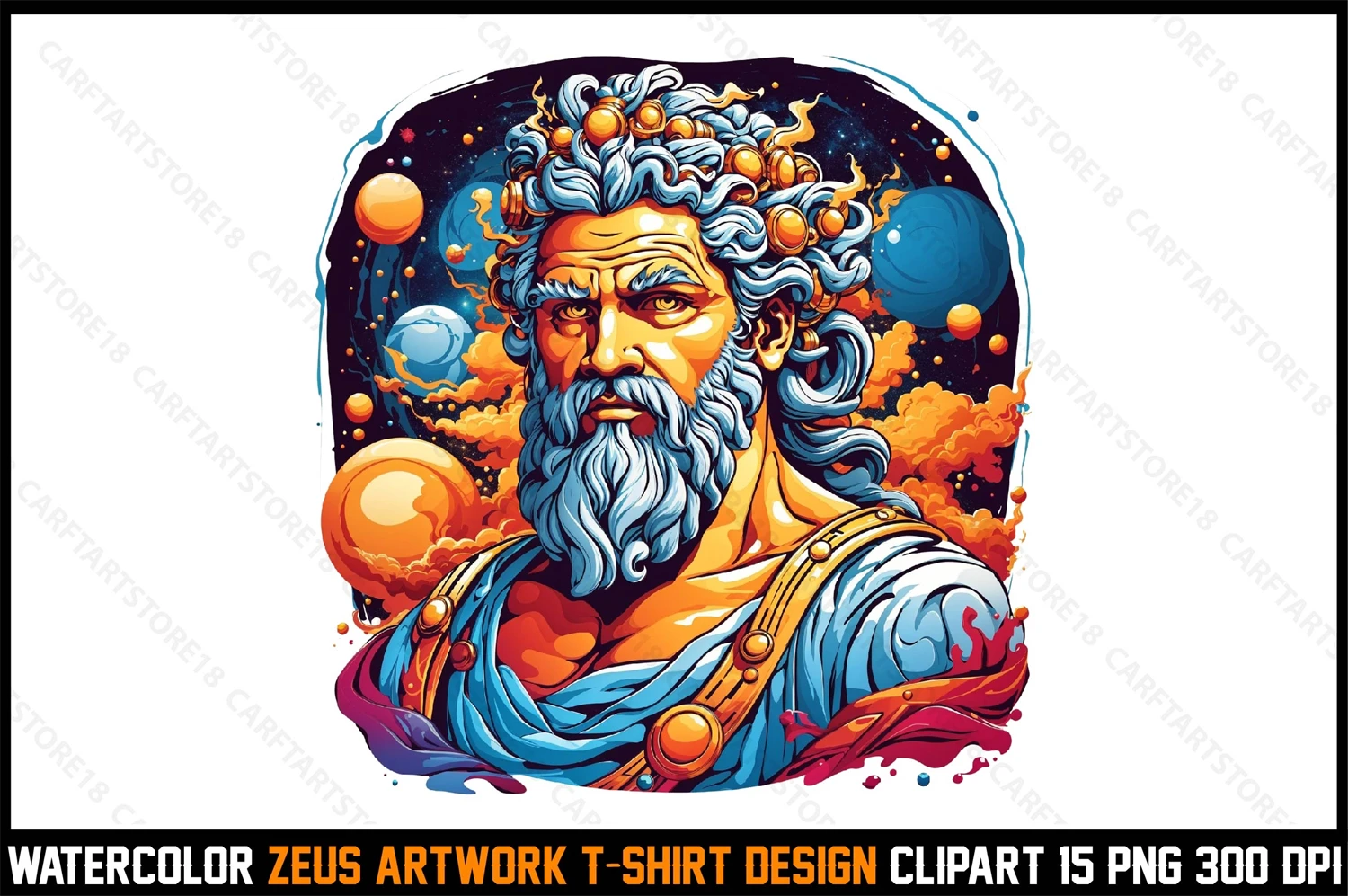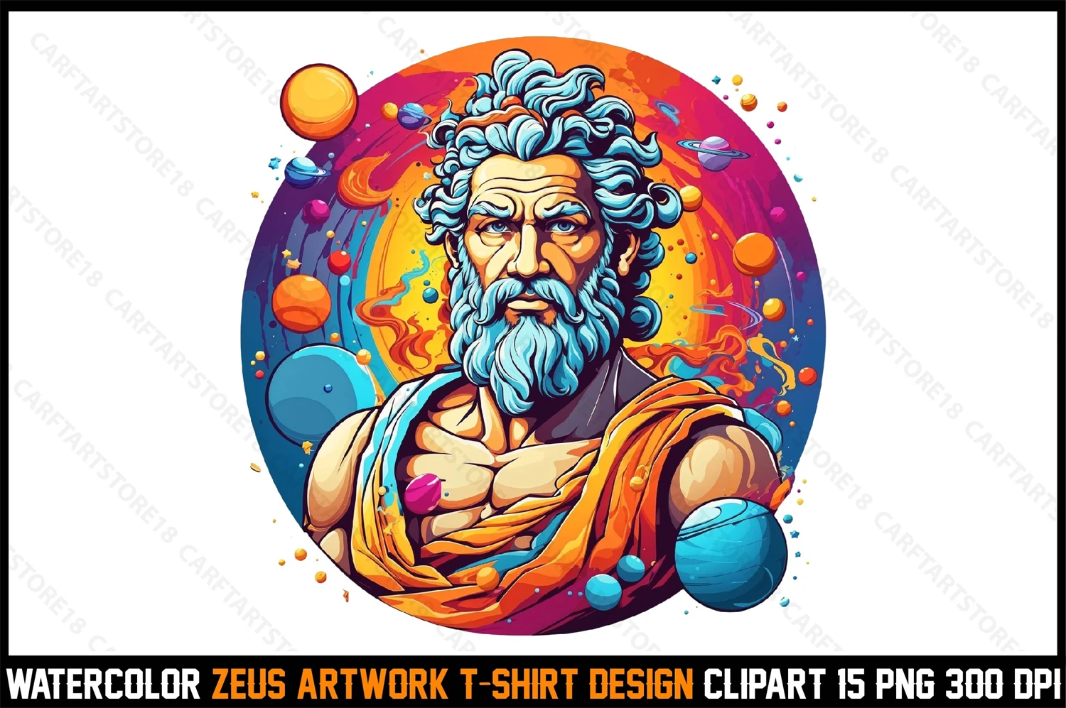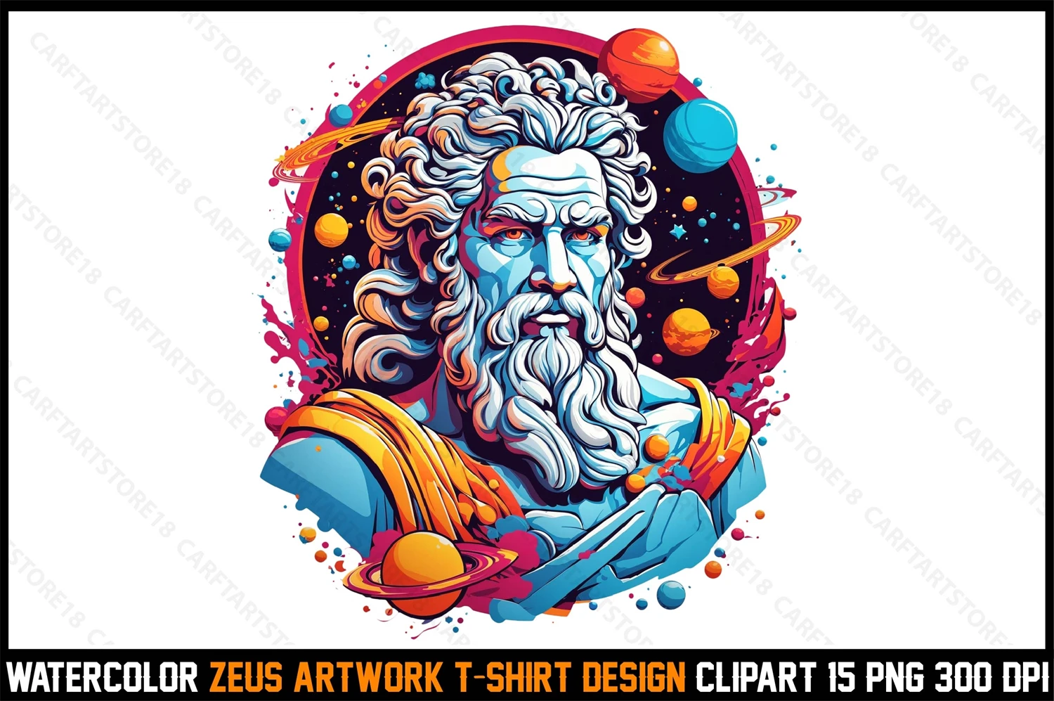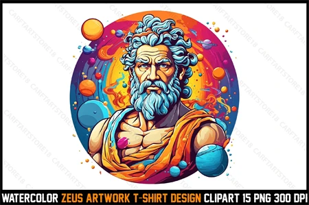 Watercolor Zeus Artwork T-Shirt Design Clipart T-Shirt Design Bundle digital download cutting file for Circuit And Silhouette