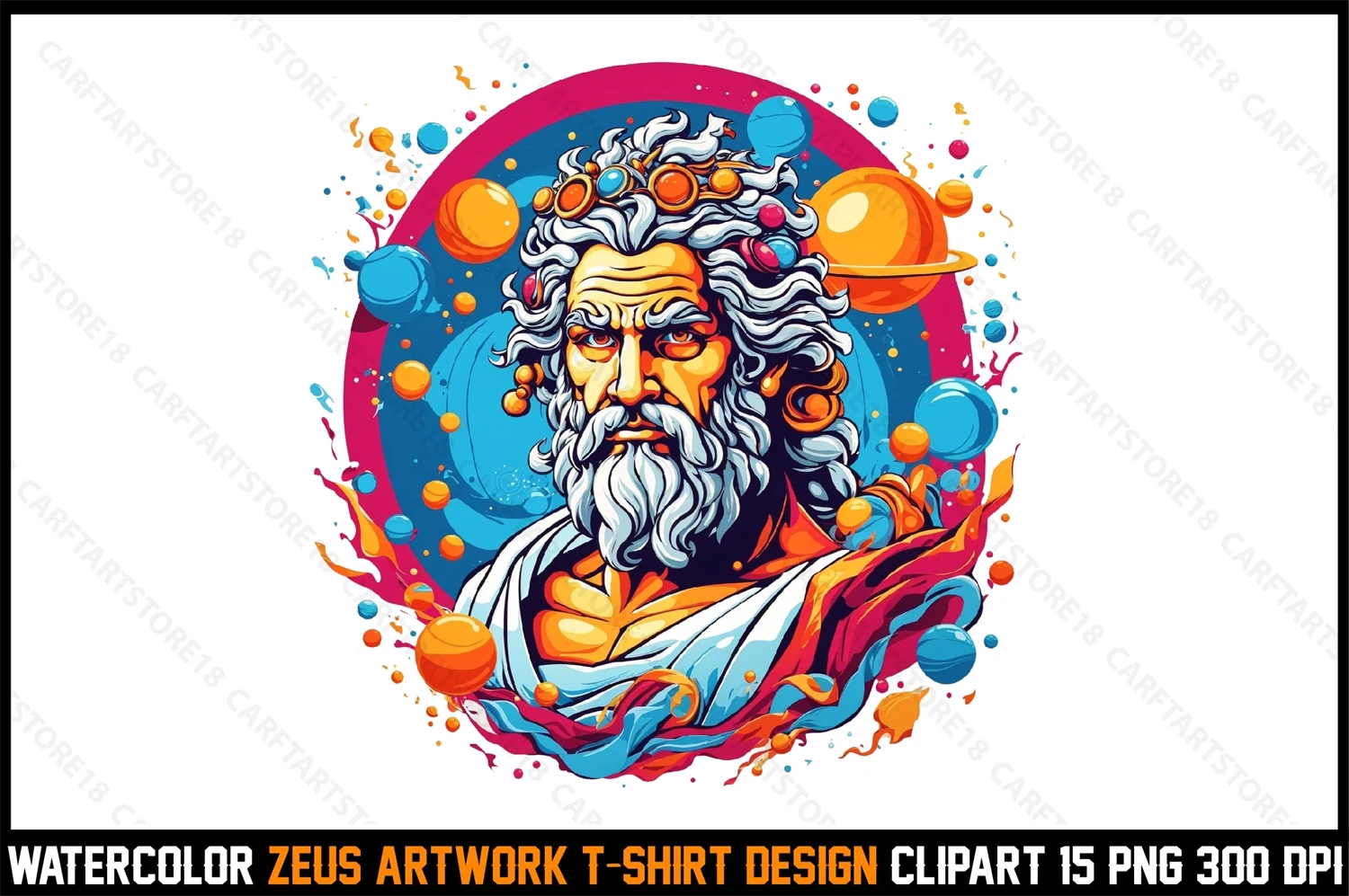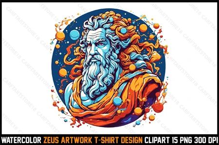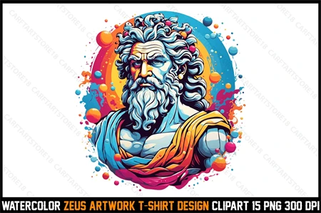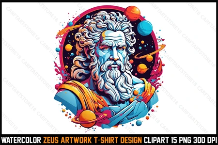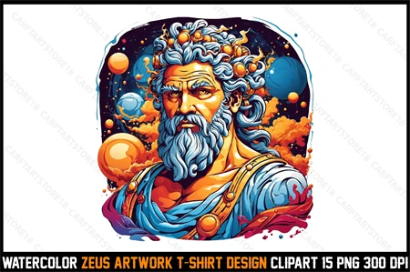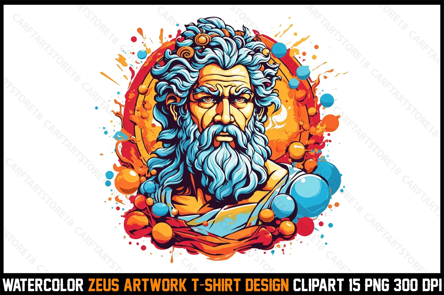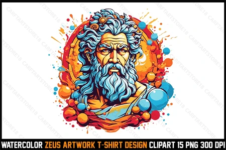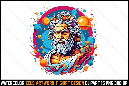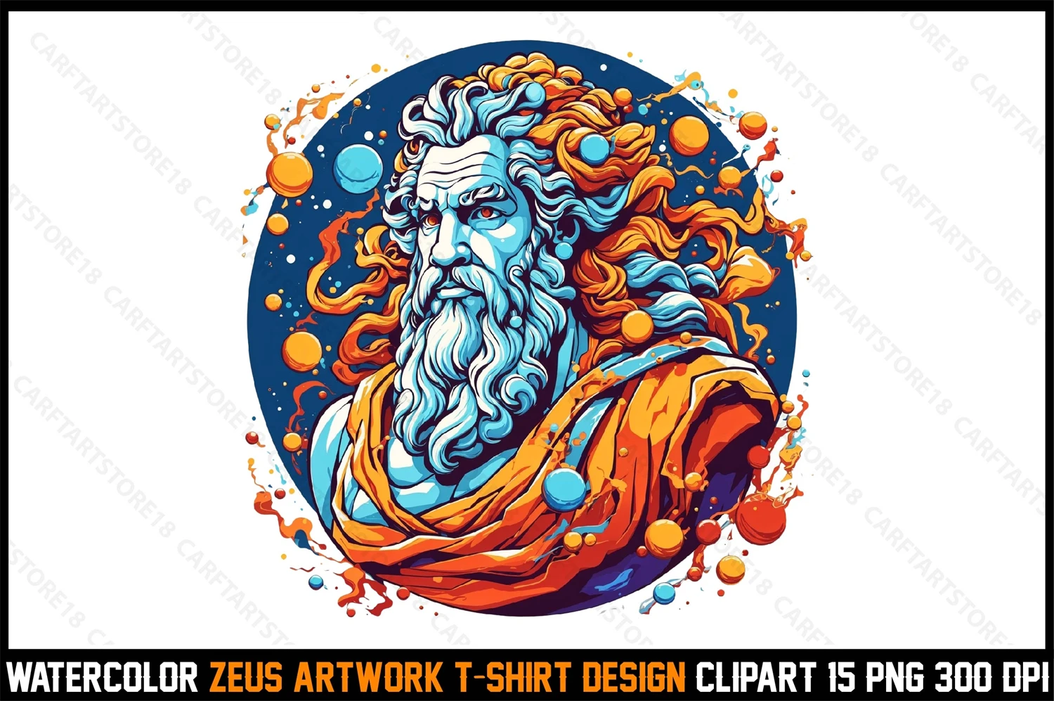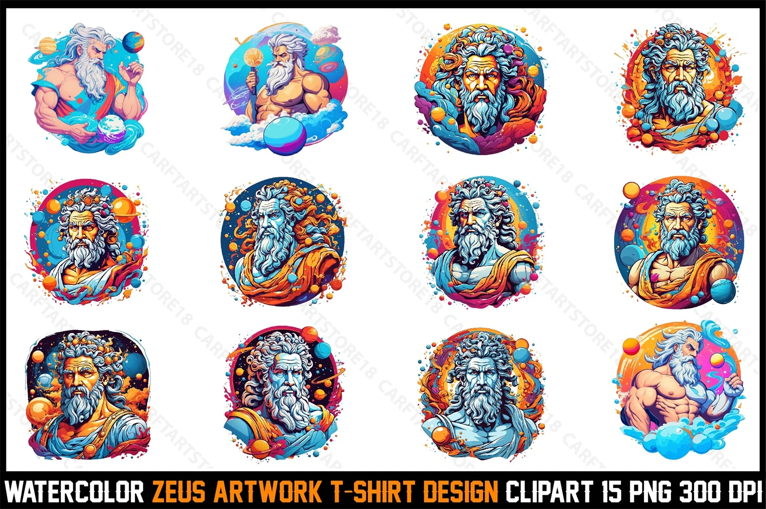 Watercolor Zeus Artwork T-Shirt Design Clipart T-Shirt Design Bundle digital download cutting file for Circuit And Silhouette