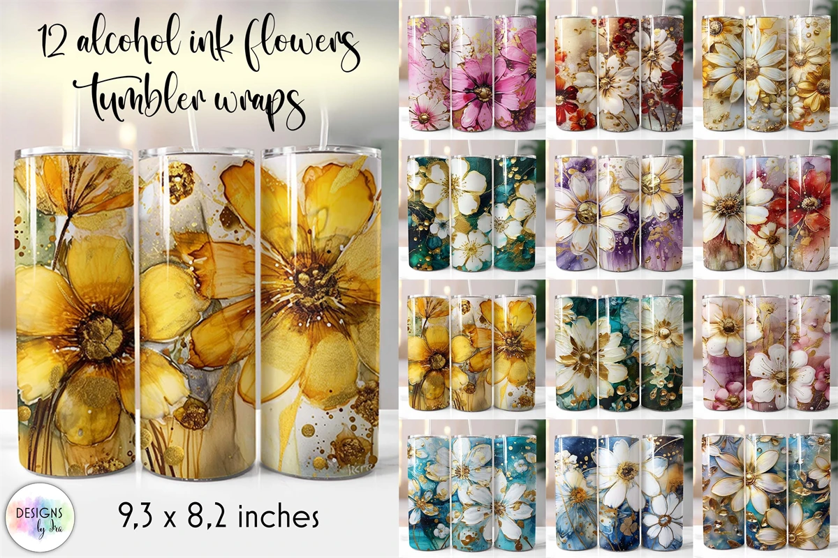 ALCOHOL INK FLORAL TUMBLER WRAP SUBLIMATION BUNDLE