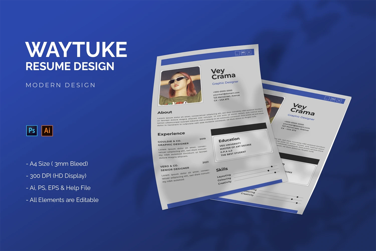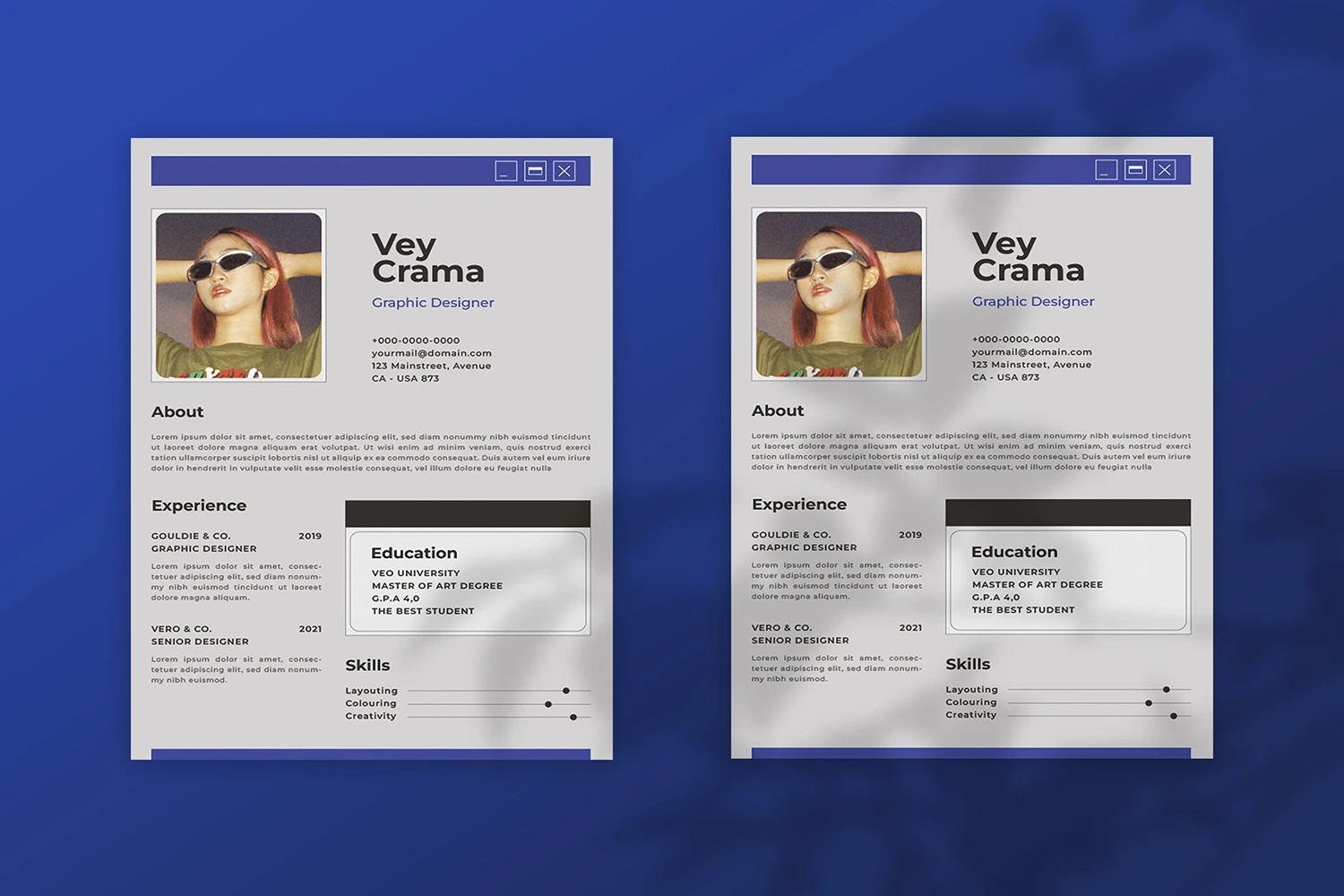 This CV resume design template lets you tell your story to potential employers or collaborators by showcasing your skills, experience, and accomplishments. It presents your credentials clearly and professionally to draw attention and highlight your strengths.