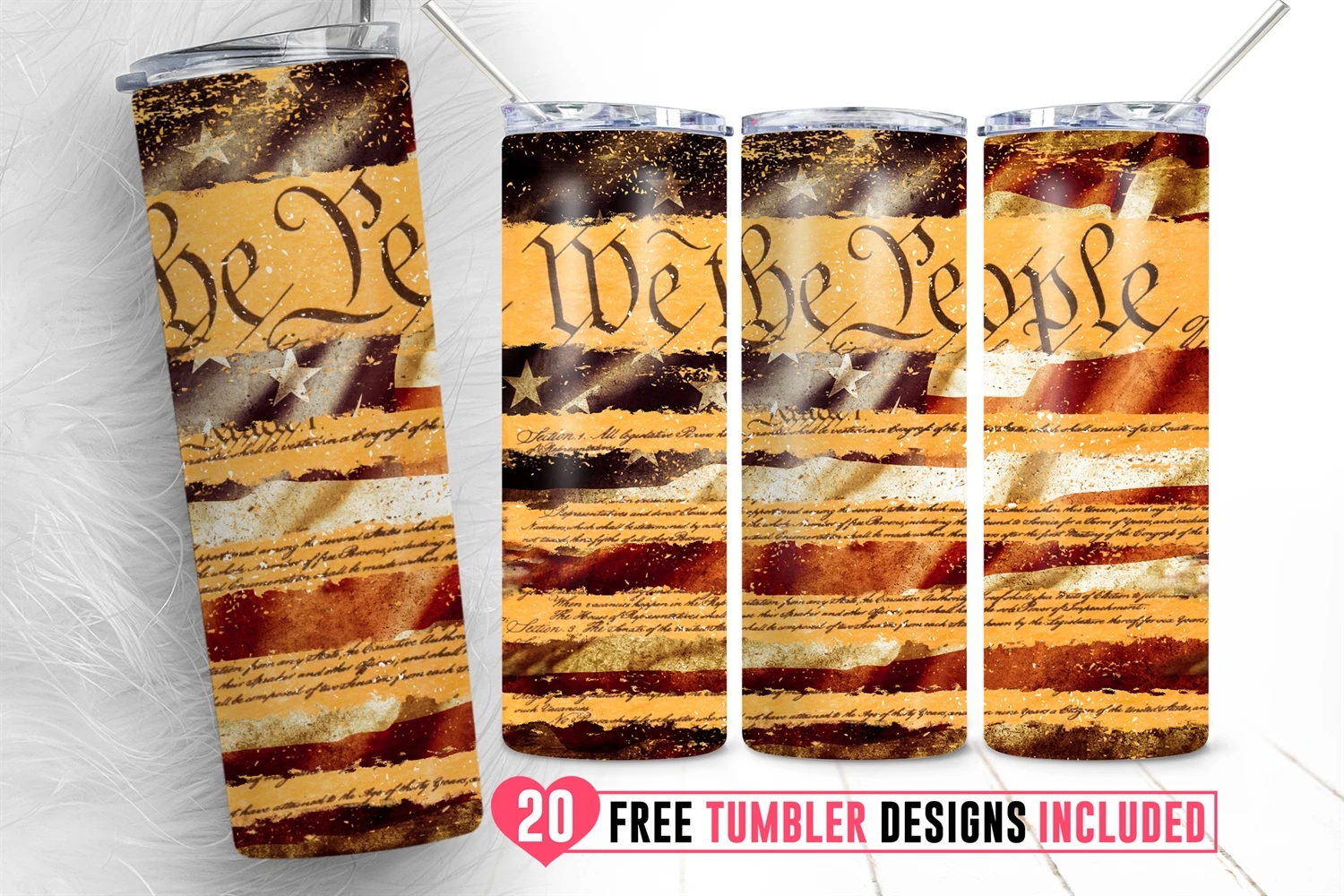 We The People American Flag Skinny Tumbler Usa 4th of July