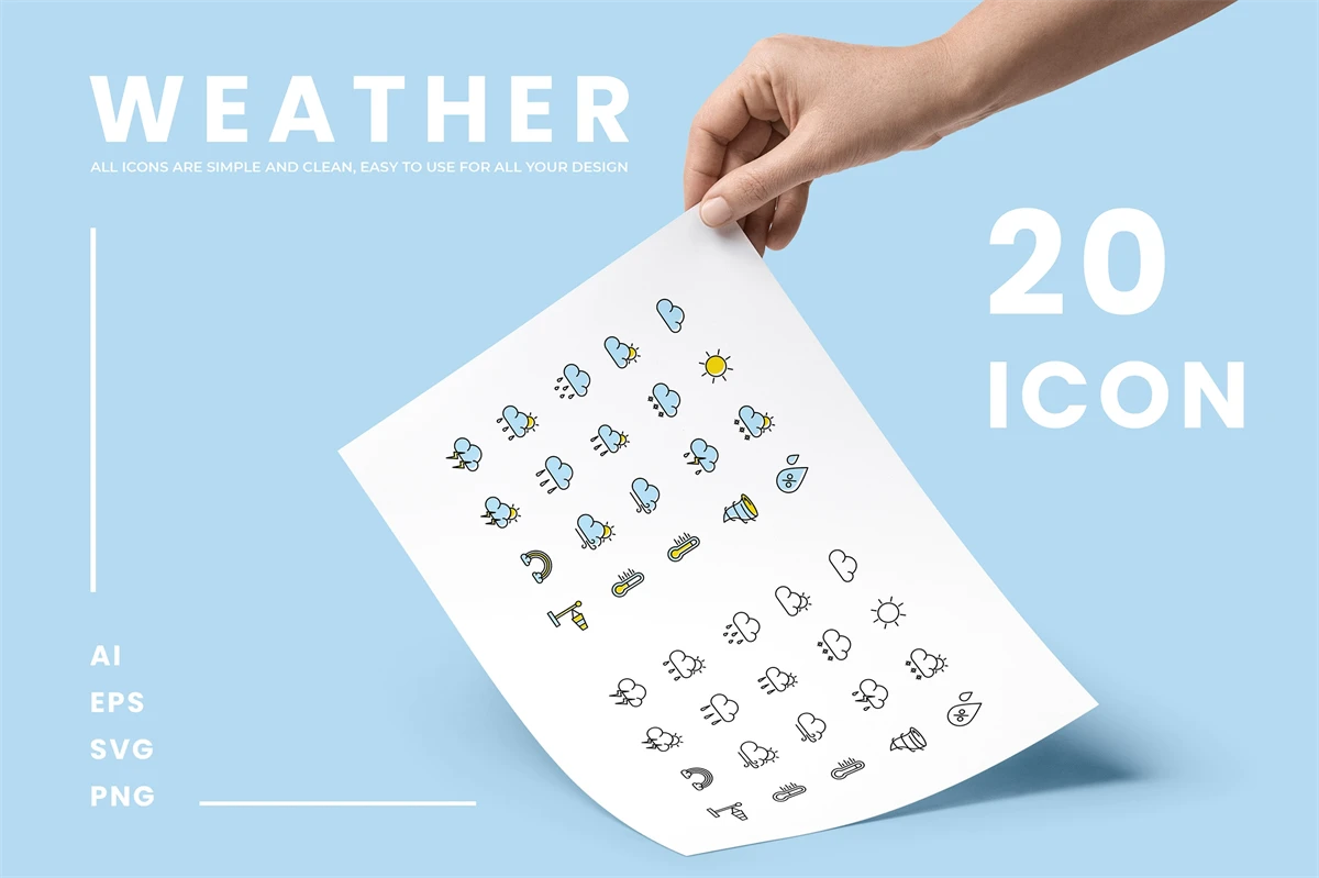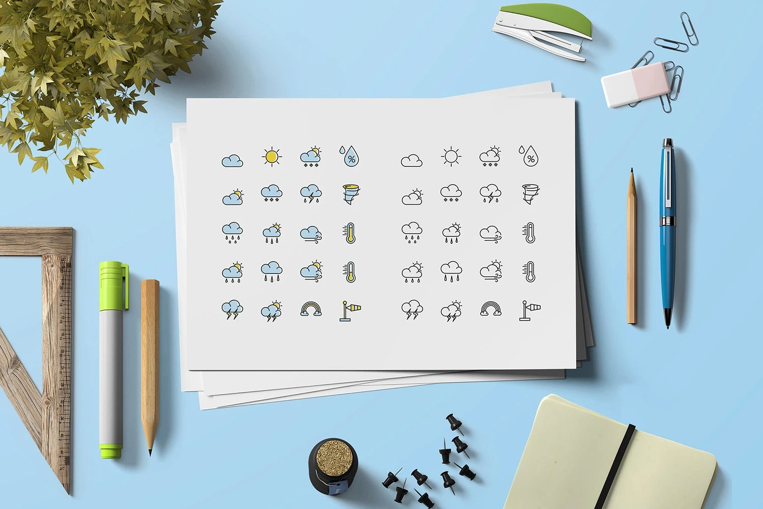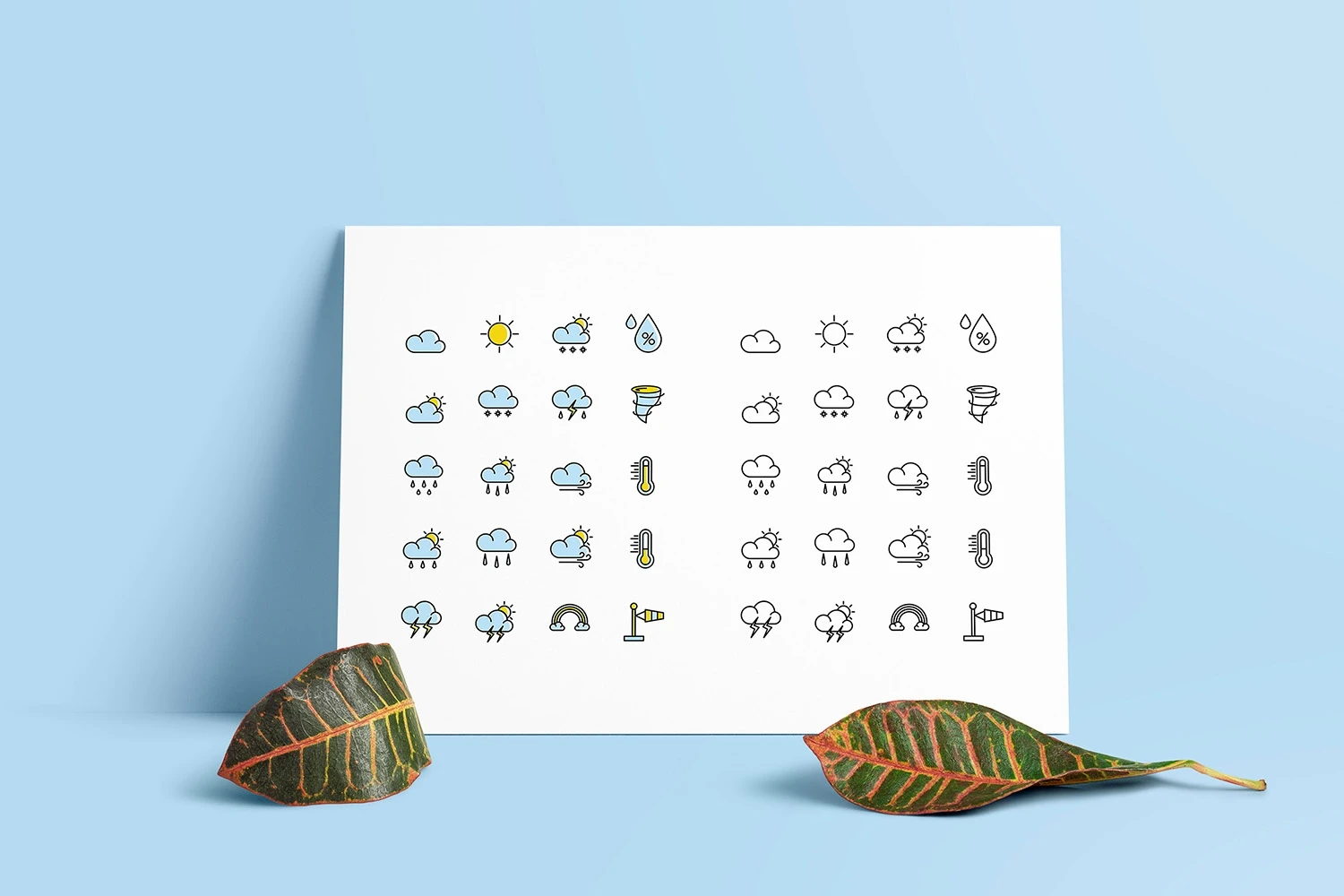 Don't miss it Weather - Icons This professional Icons pack, high quality, for professional designers, easy to use, fully editable & customizable in Adobe Illustrator