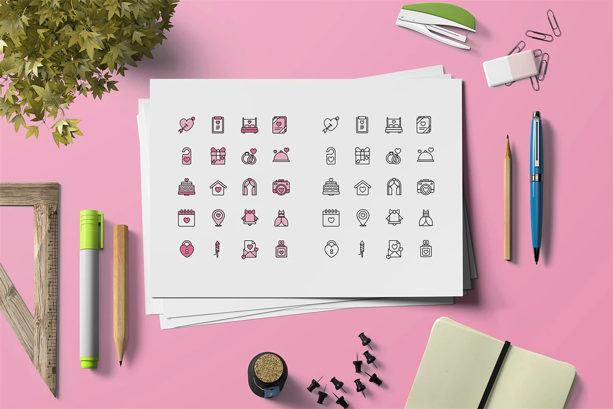 Don't miss it Wedding - Icons This professional Icons pack, high quality, for professional designers, easy to use, fully editable & customizable in Adobe Illustrator