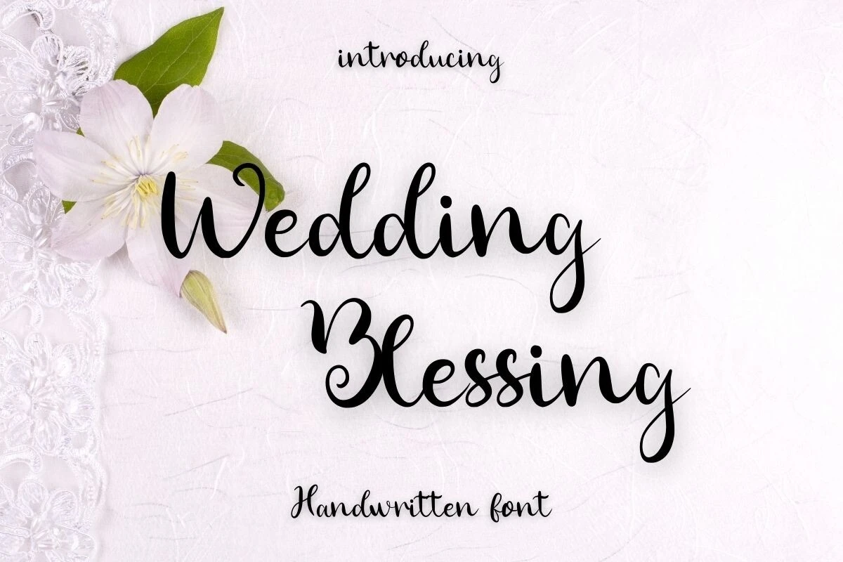 Add an ageless allure to your artworks with the Wedding Blessing font. Ideal for making cherished wedding invitations, impactful event placards, assorted greeting cards, and joyous party designs. This elegant typeface, with its finely crafted strokes and stylish curves, introduces a layer of refined sophistication to each creative project. From crafts to celebrations, the romantic appeal of 'Wedding Blessing' font uplifts your design aesthetic.
