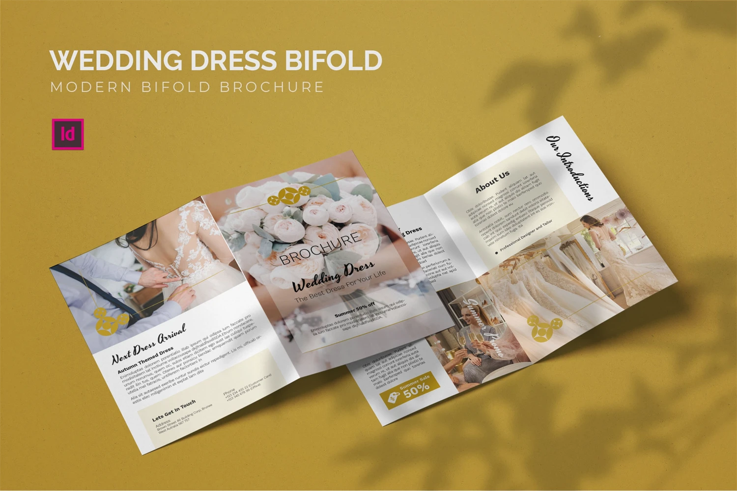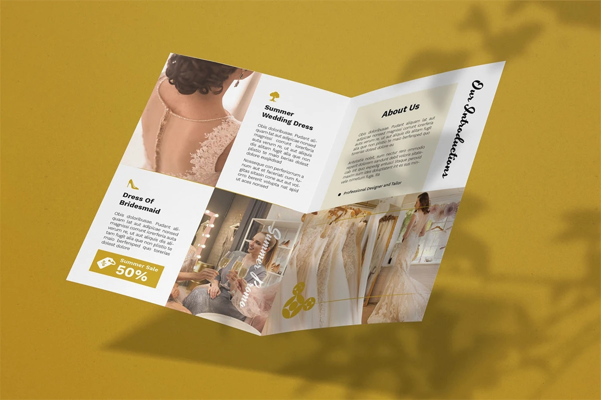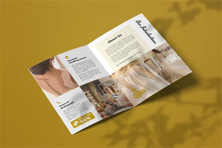 Wedding Dress - Bifold Brochure We present this Bifold Brochure for you, simple and very elegant, and this Bifold Brochure is suitable for all types of your business, made with adobe inDesign, very easy to customize, Hope you Like it, dont forget to rate, Thanks.