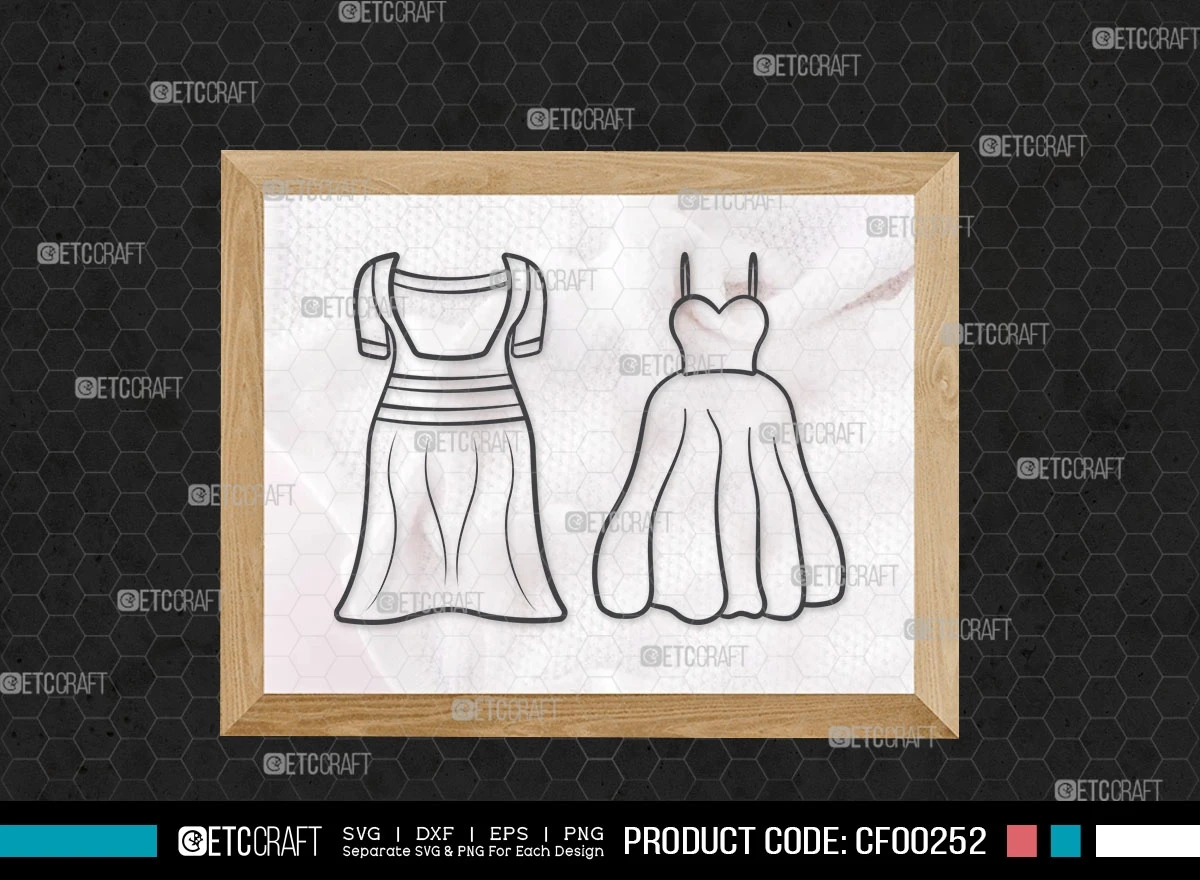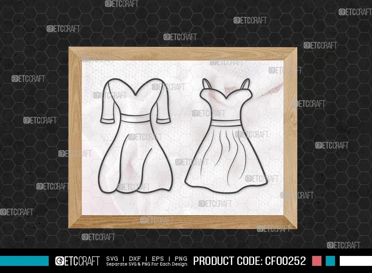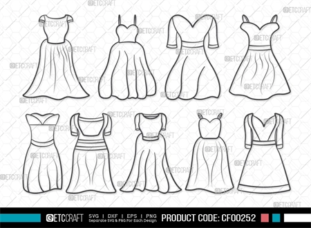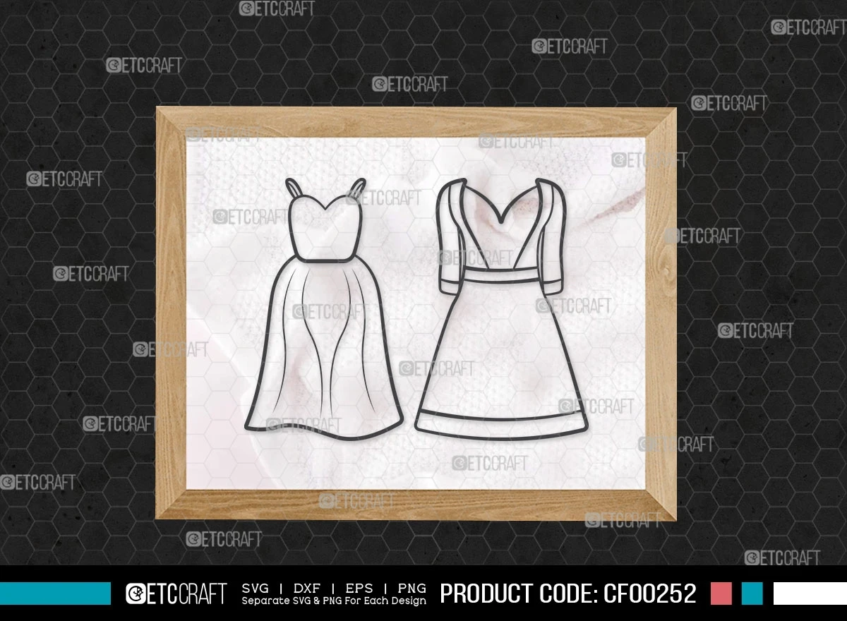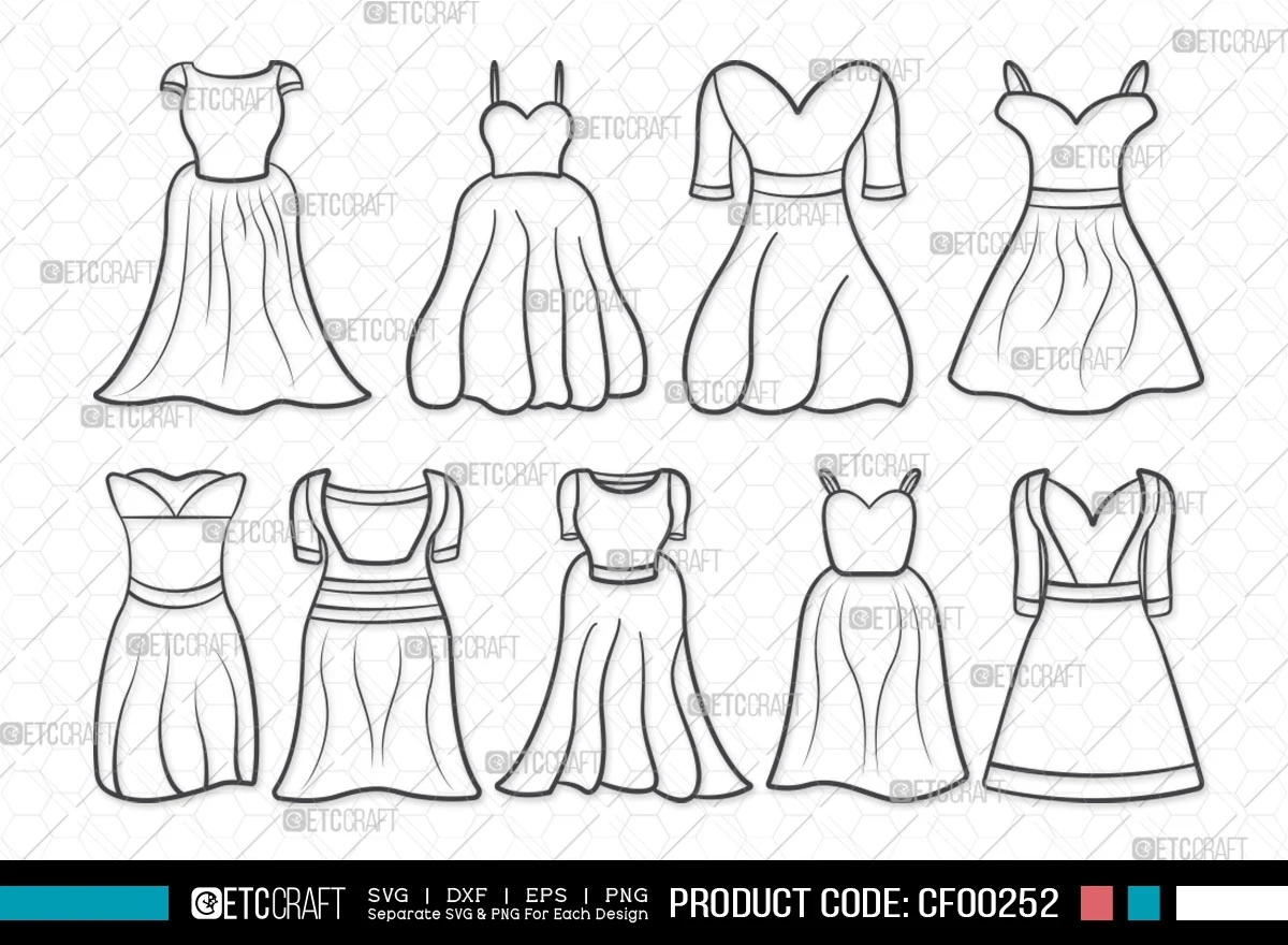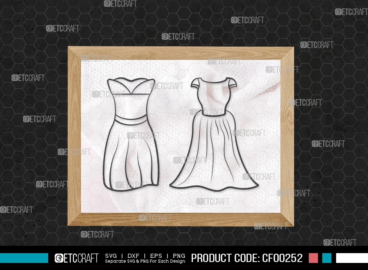 Elevate your wedding design projects with our exquisite Wedding Dress Outline Short Strapless Princess Bride Gown SVG Cut File Bundle. This carefully crafted bundle is your ultimate resource for creating elegant bride gown designs, featuring short strapless princess gowns that exude grace and charm.