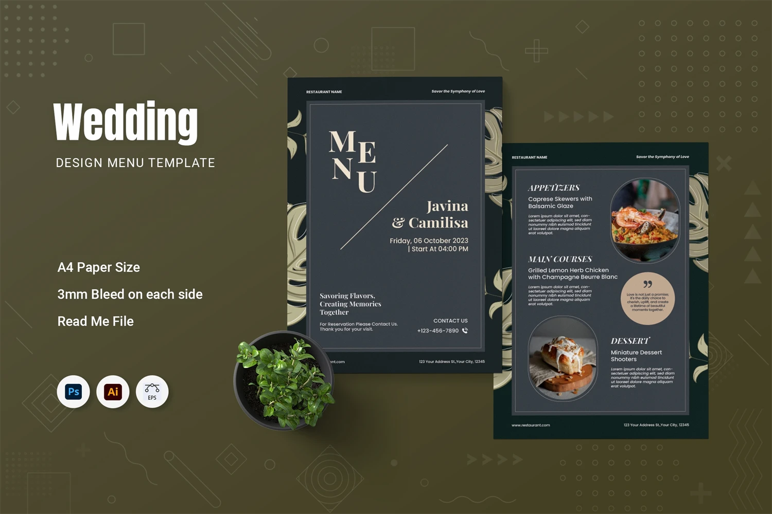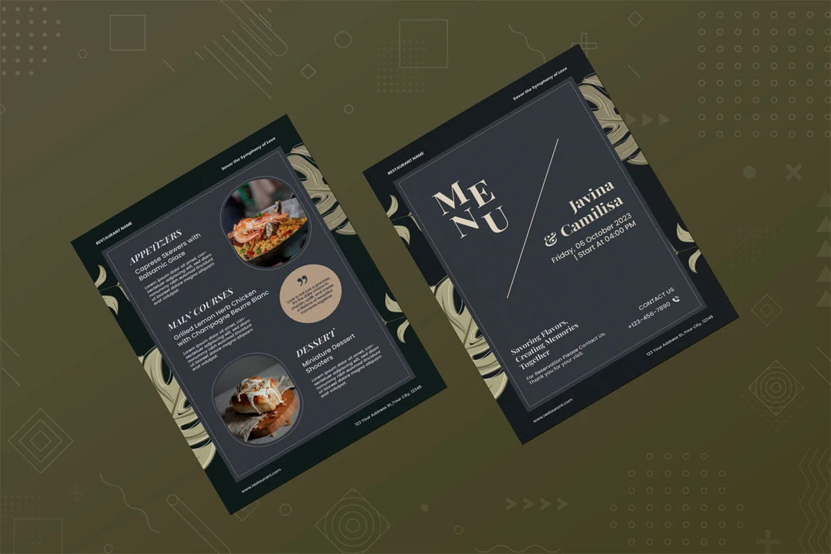 Utilizing enchanting imagery and versatile ordering options, you possess the capability to construct a menu that is equally unforgettable as the cuisine you provide. Let's generate a positive initial impact by selecting our template for your menu.