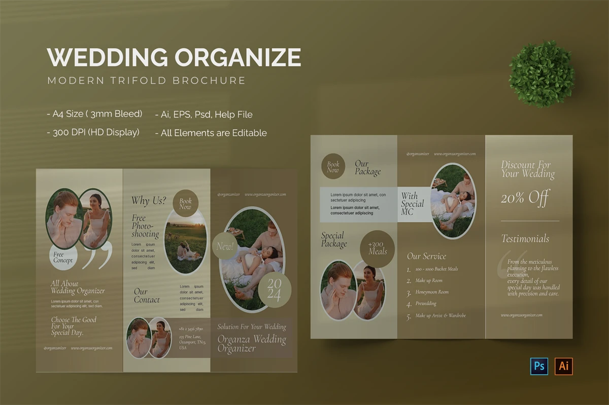This type of brochure is split into three equal parts to make three panels when information about your brand can be displayed. Use this template because it's easy to edit!