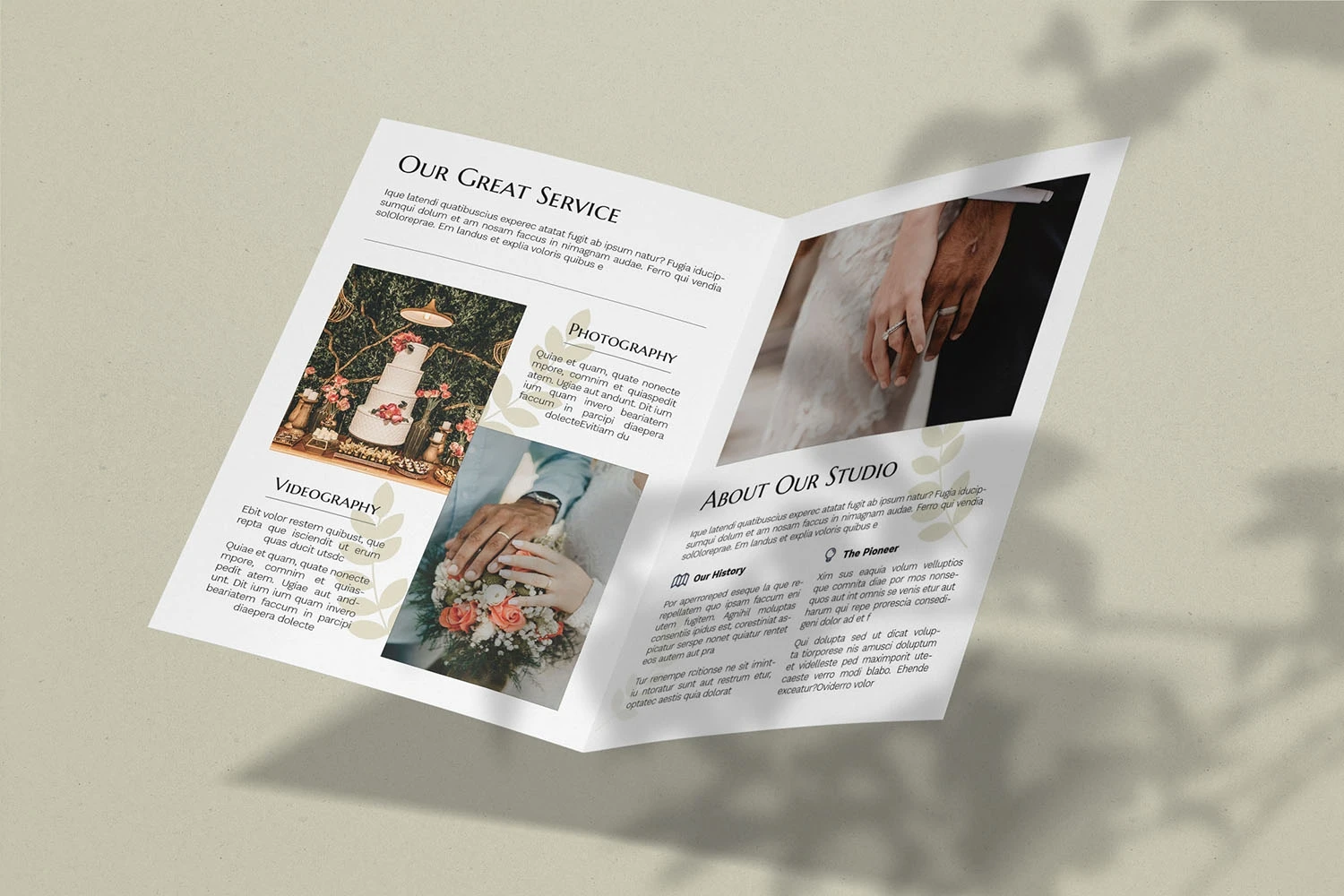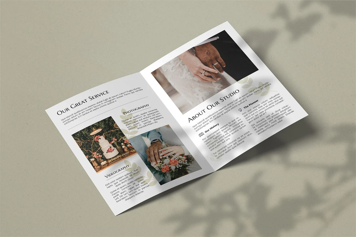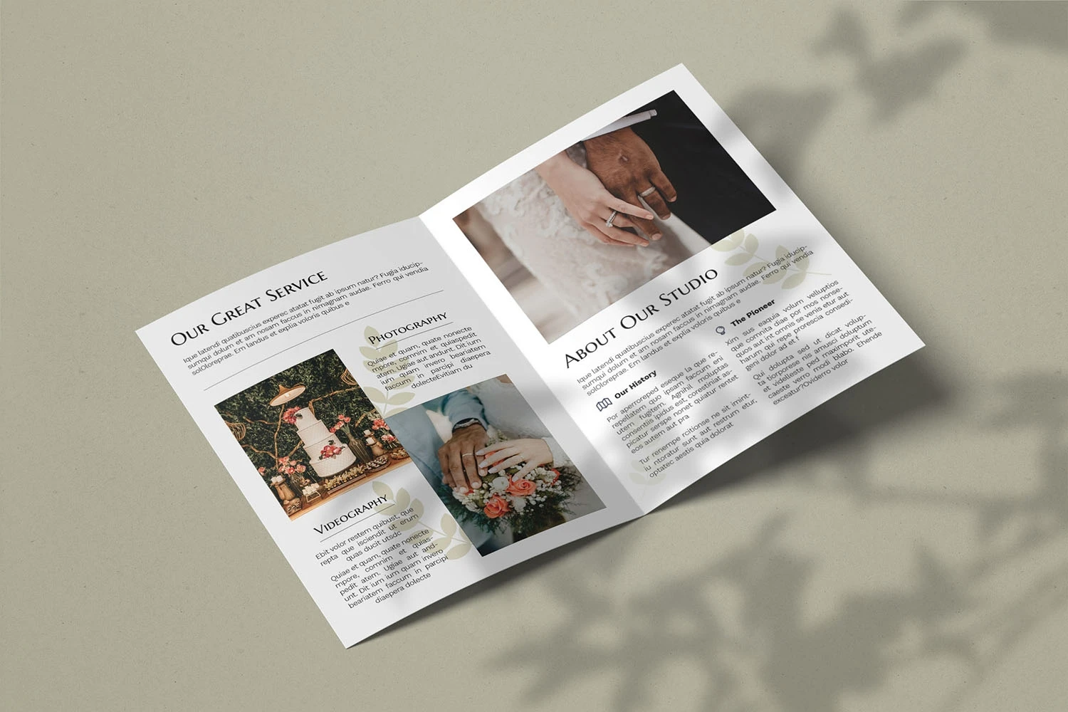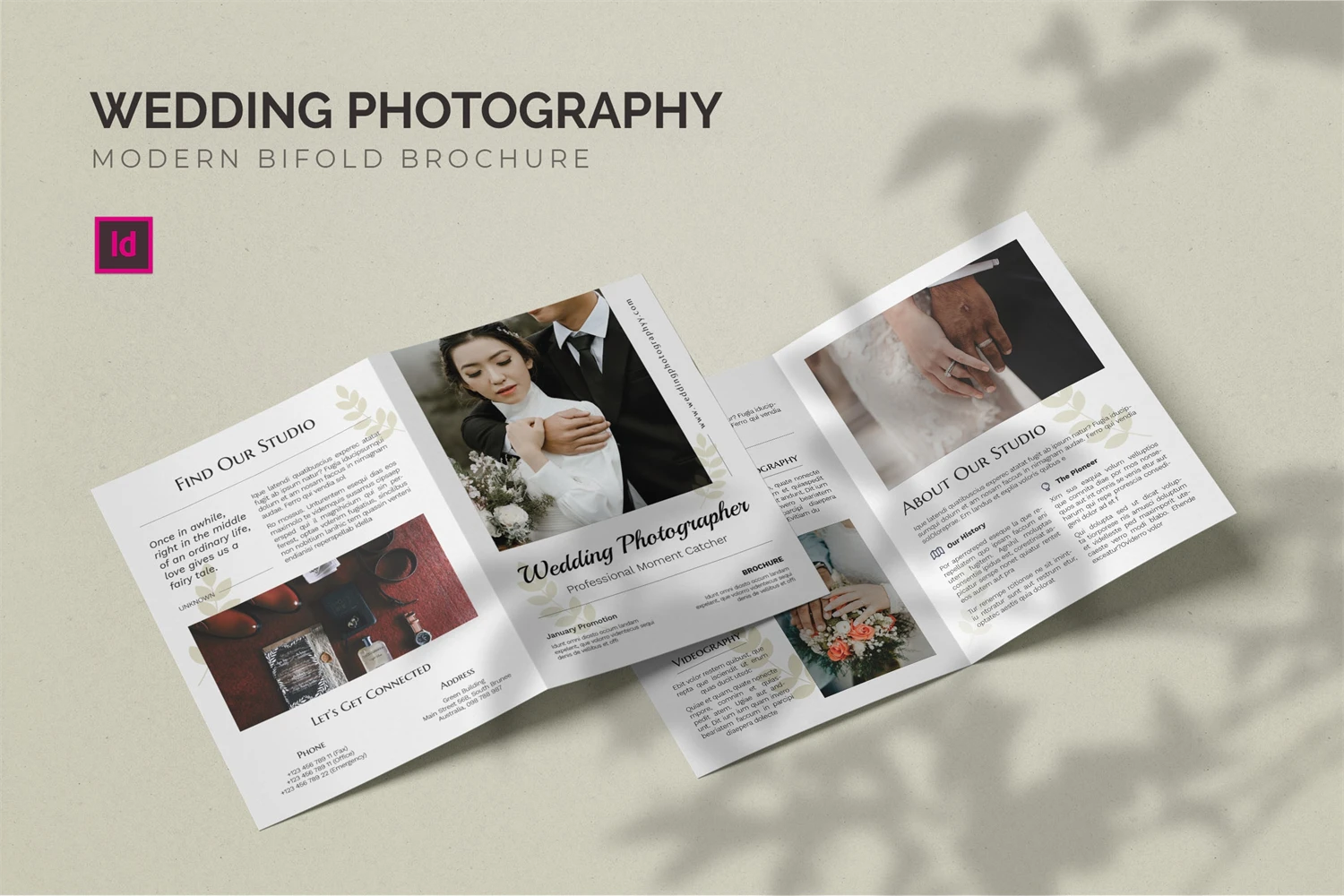Wedding Photography - Bifold Brochure We present this Bifold Brochure for you, simple and very elegant, and this Bifold Brochure is suitable for all types of your business, made with adobe inDesign, very easy to customize, Hope you Like it, dont forget to rate, Thanks.