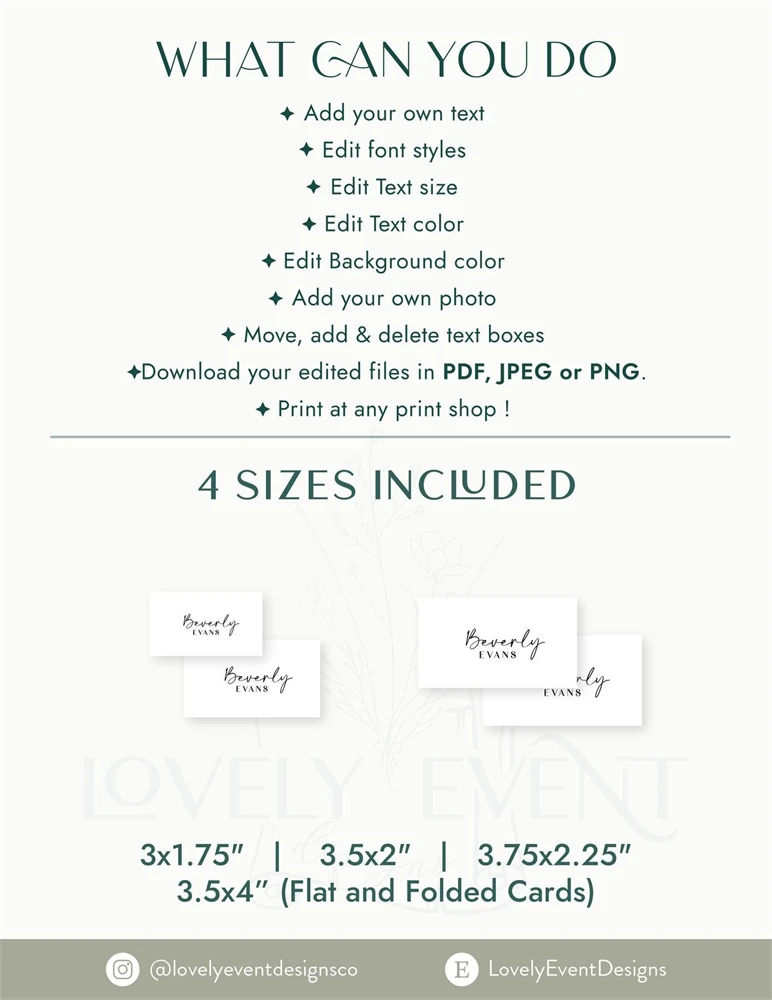 Wedding Place Cards Template, Wedding Name Cards, Elegant Pl
