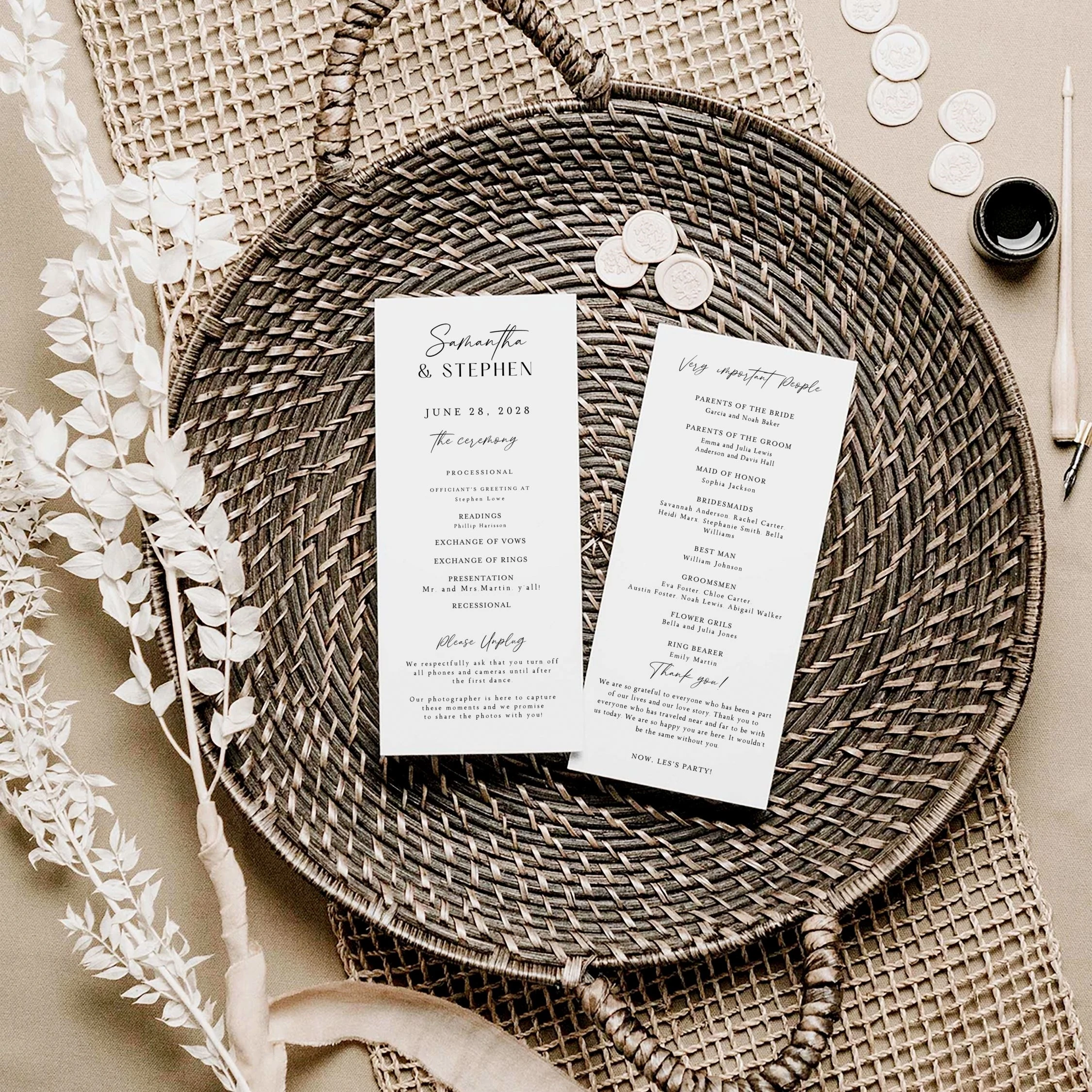 This file template has a modern aesthetic and is perfect for those who want to have a great wedding stationery. This template eliminates the need to contract a designer to create your wedding stationery.
