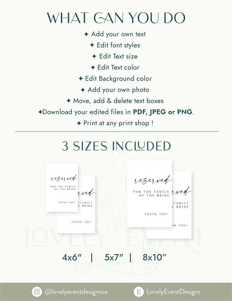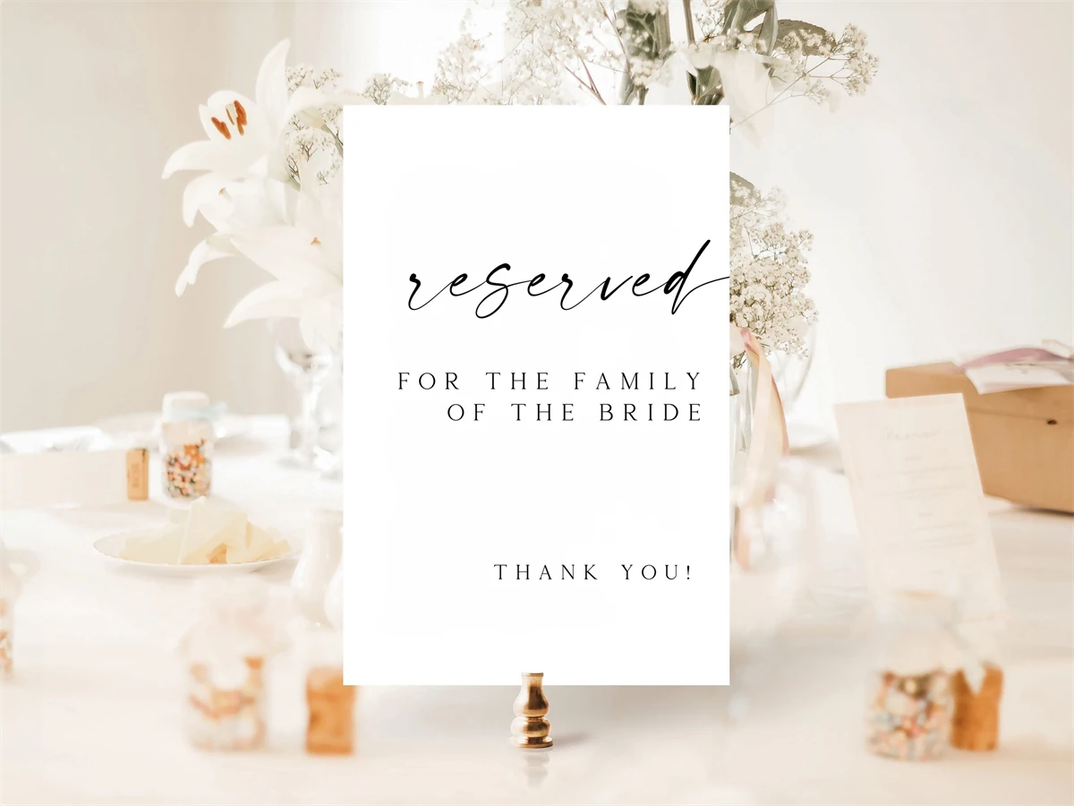 Wedding reserved sign template, Small Wedding Reserved Sign