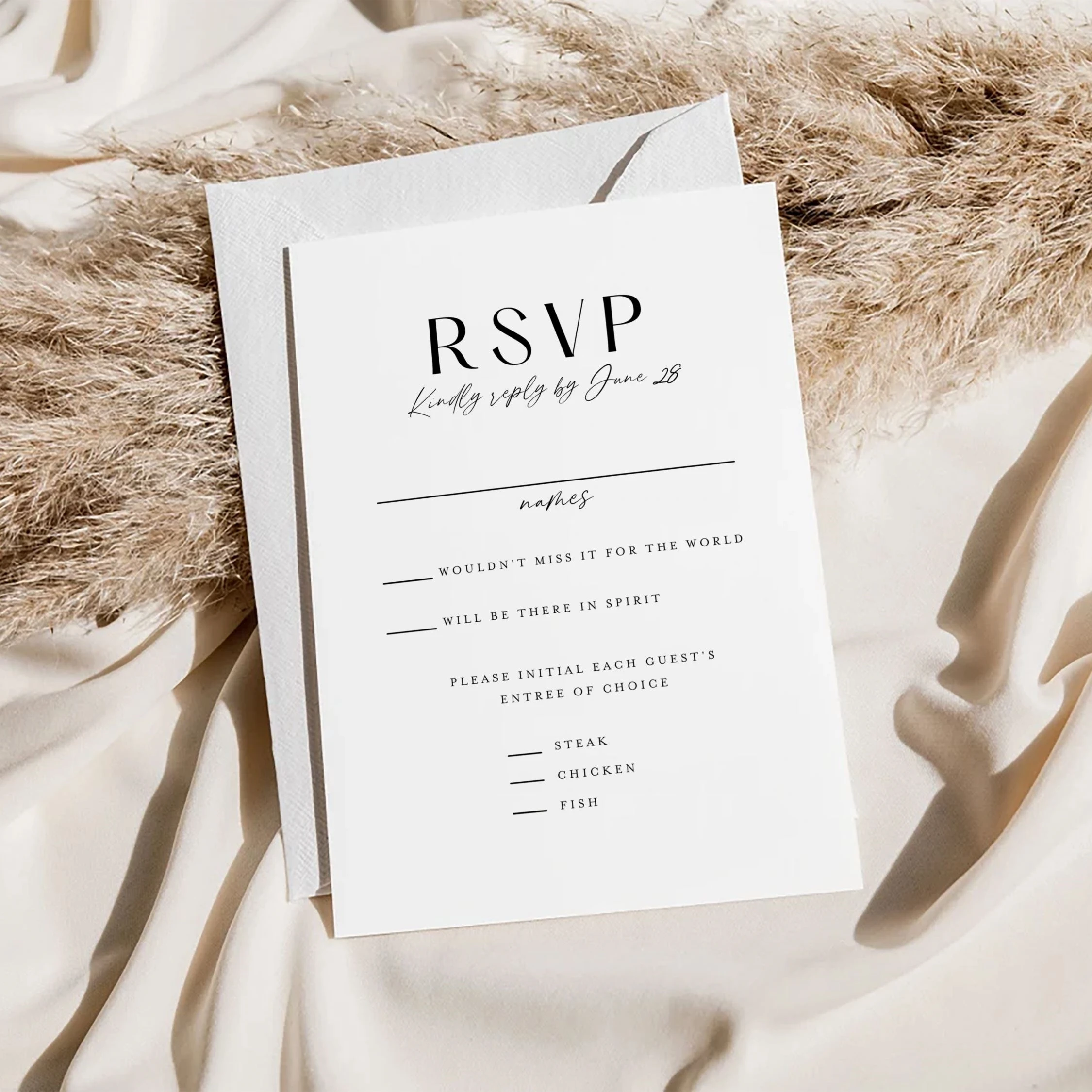 This file template has a modern aesthetic and is perfect for those who want to have a great wedding stationery. This template eliminates the need to contract a designer to create your wedding stationery.