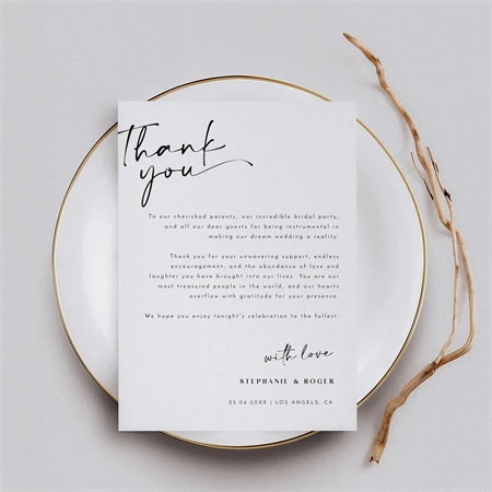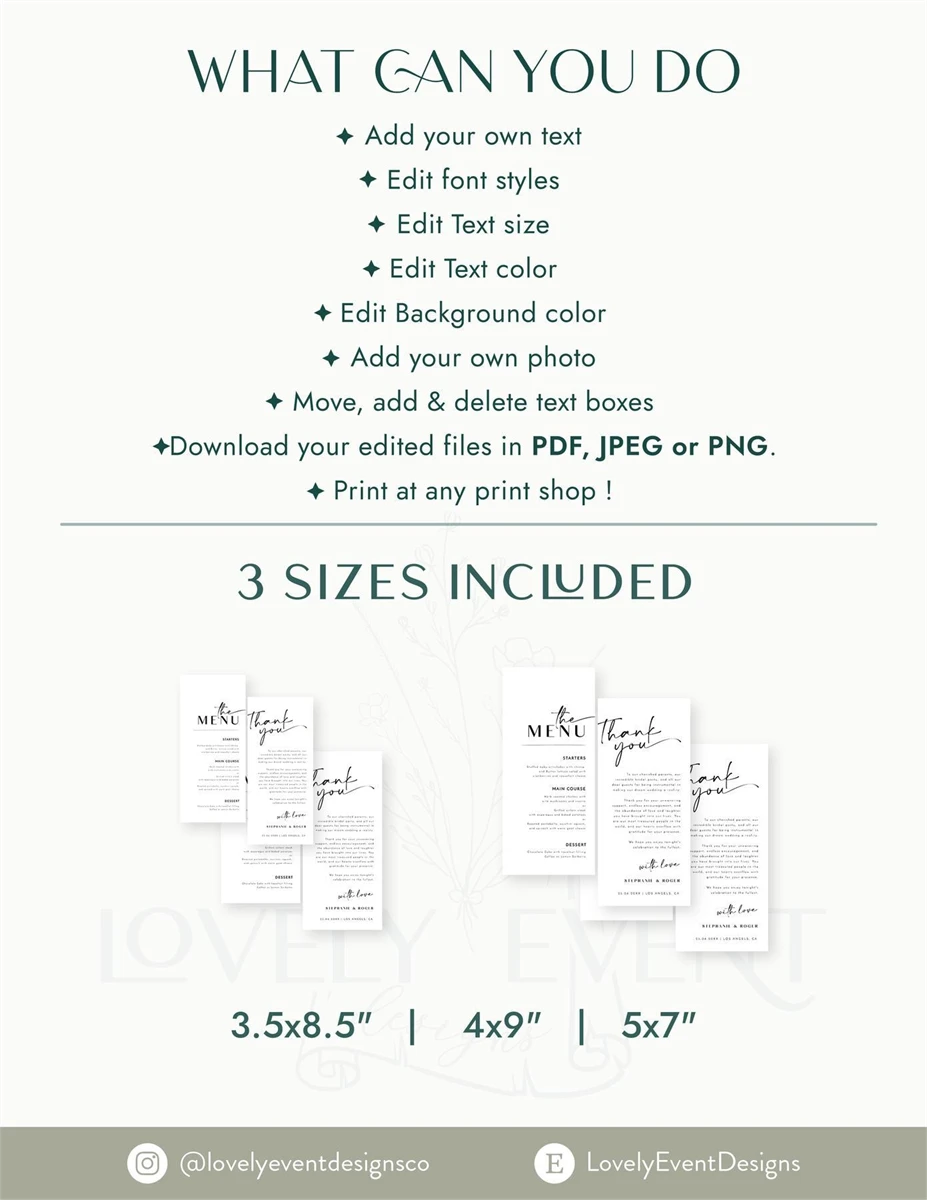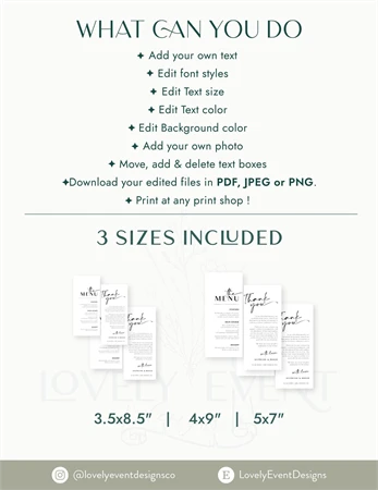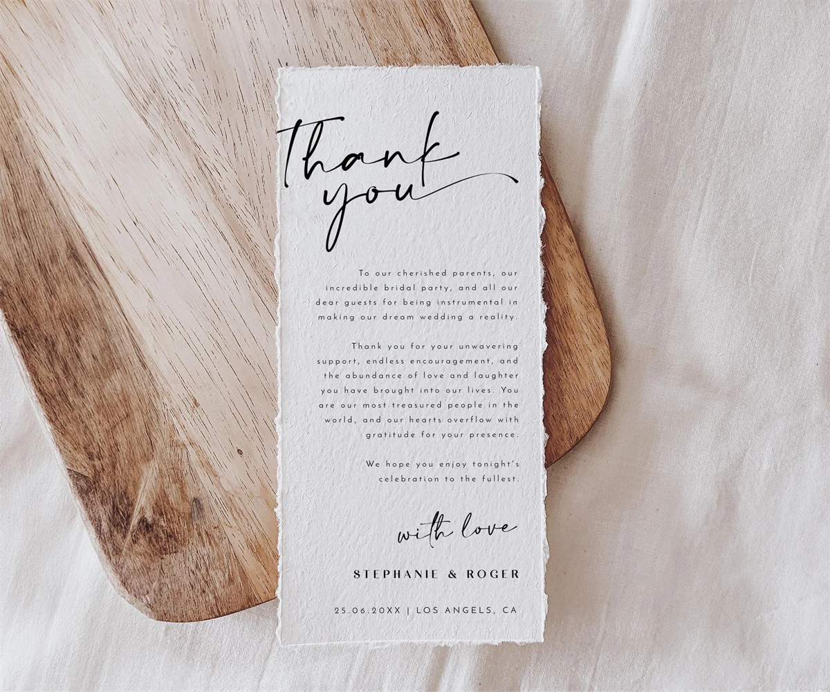 Wedding Thank You Card Template, Minimalist Wedding Menu Tem