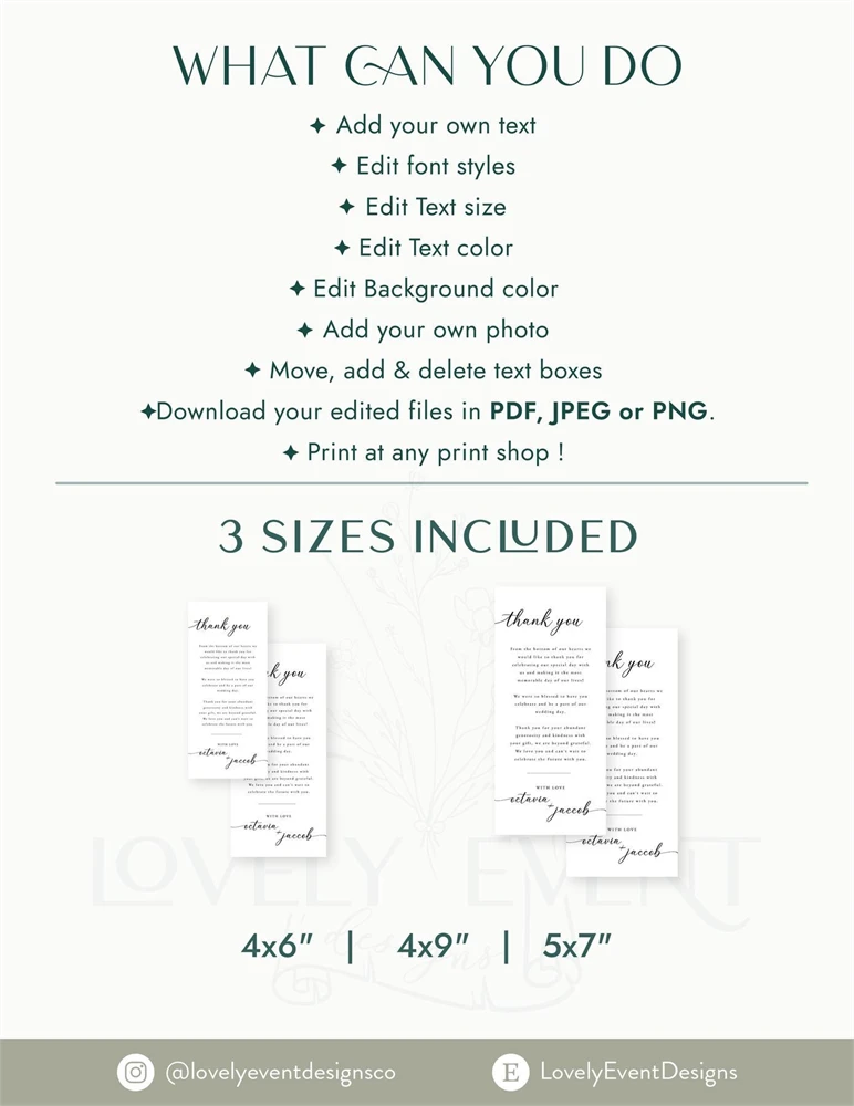 Wedding Thank You Card Template, Minimalist Wedding Photo Th