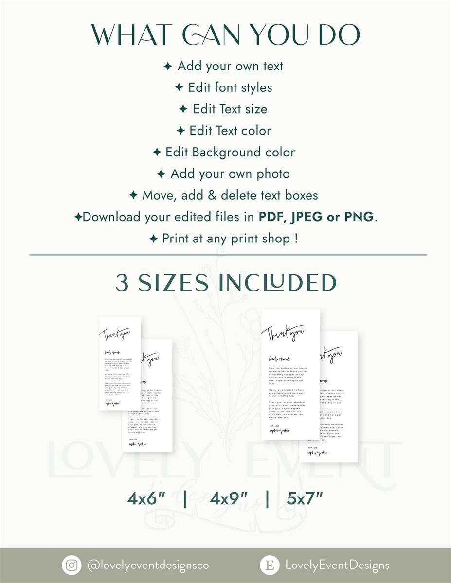 Wedding Thank You Card Template, Minimalist Wedding Photo Th