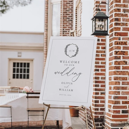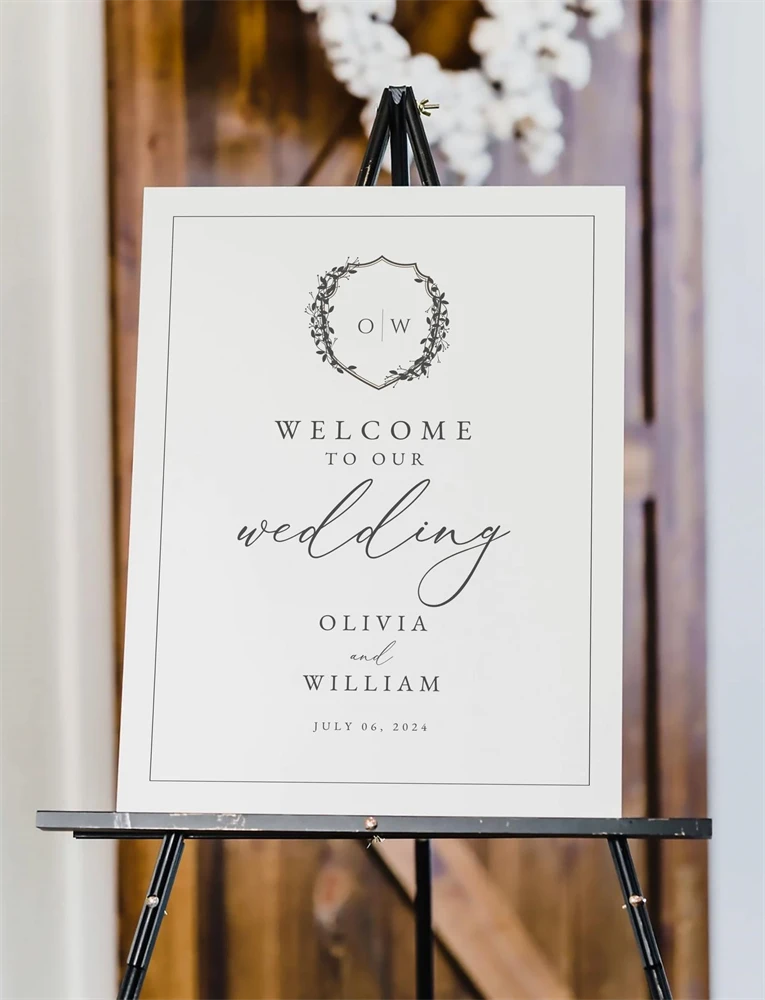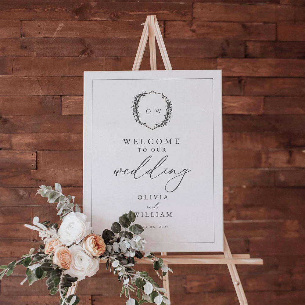 Wedding Welcome Sign Template, Botanical Crest, Elegan,Canva