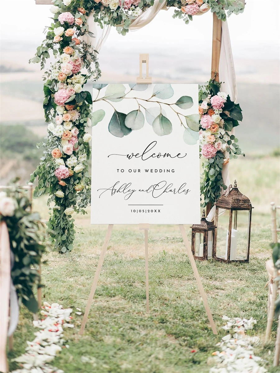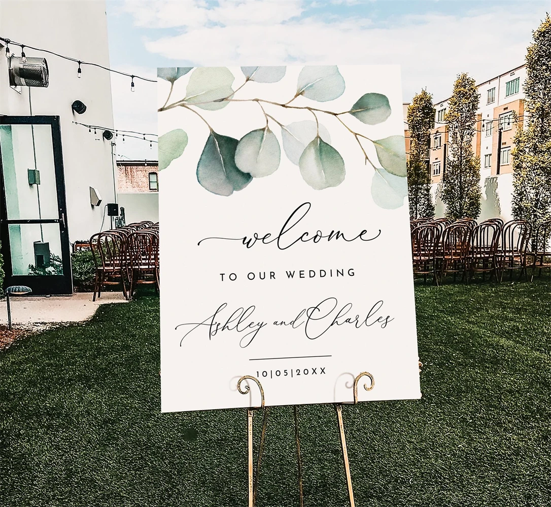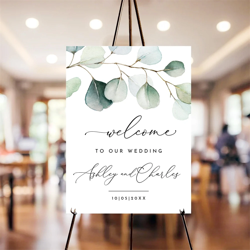 Wedding Welcome Sign Template, Editable Eucalyptus,Canva