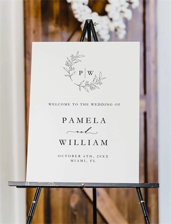 Wedding Welcome Sign Template, Elegant Winter Wreath,Canva