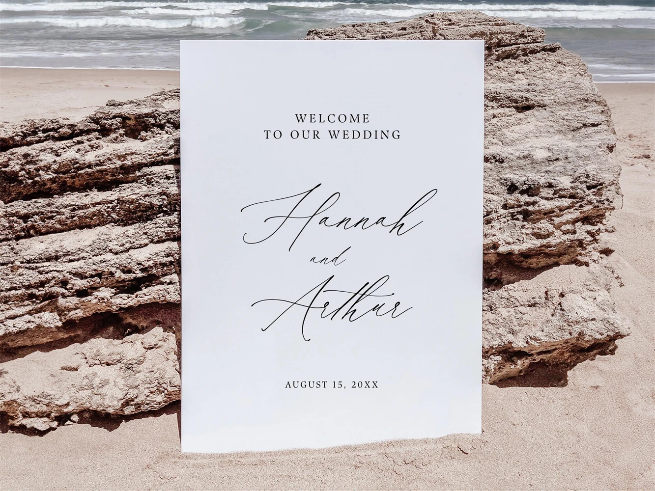 Wedding Welcome Sign Template, Modern Calligraphy, Canva