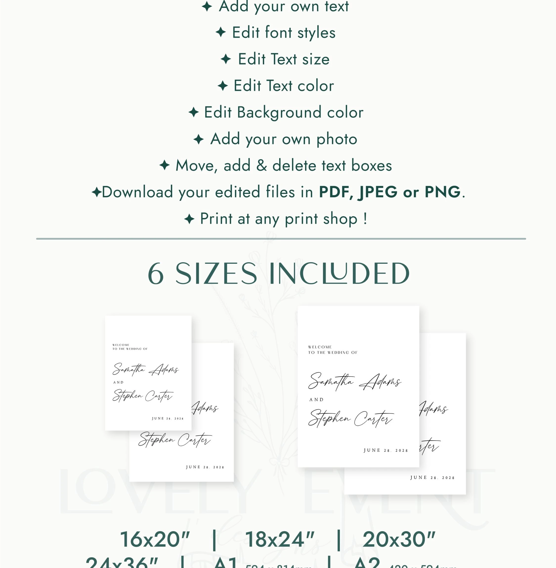 This is a fully editable template. The purchase is just for a digital file. There will be no actual object sent to you. It does not include printing, framing, or other finishing touches.