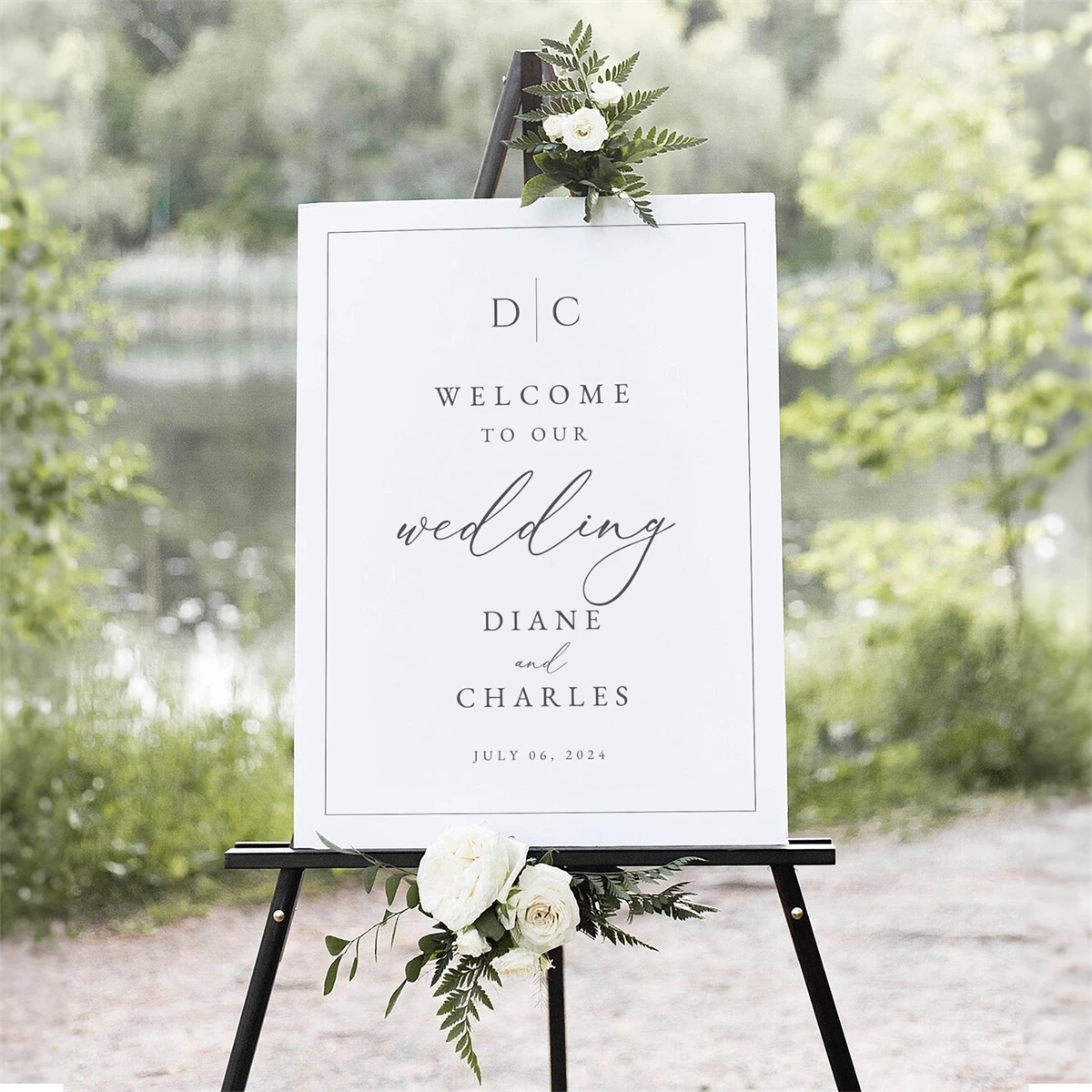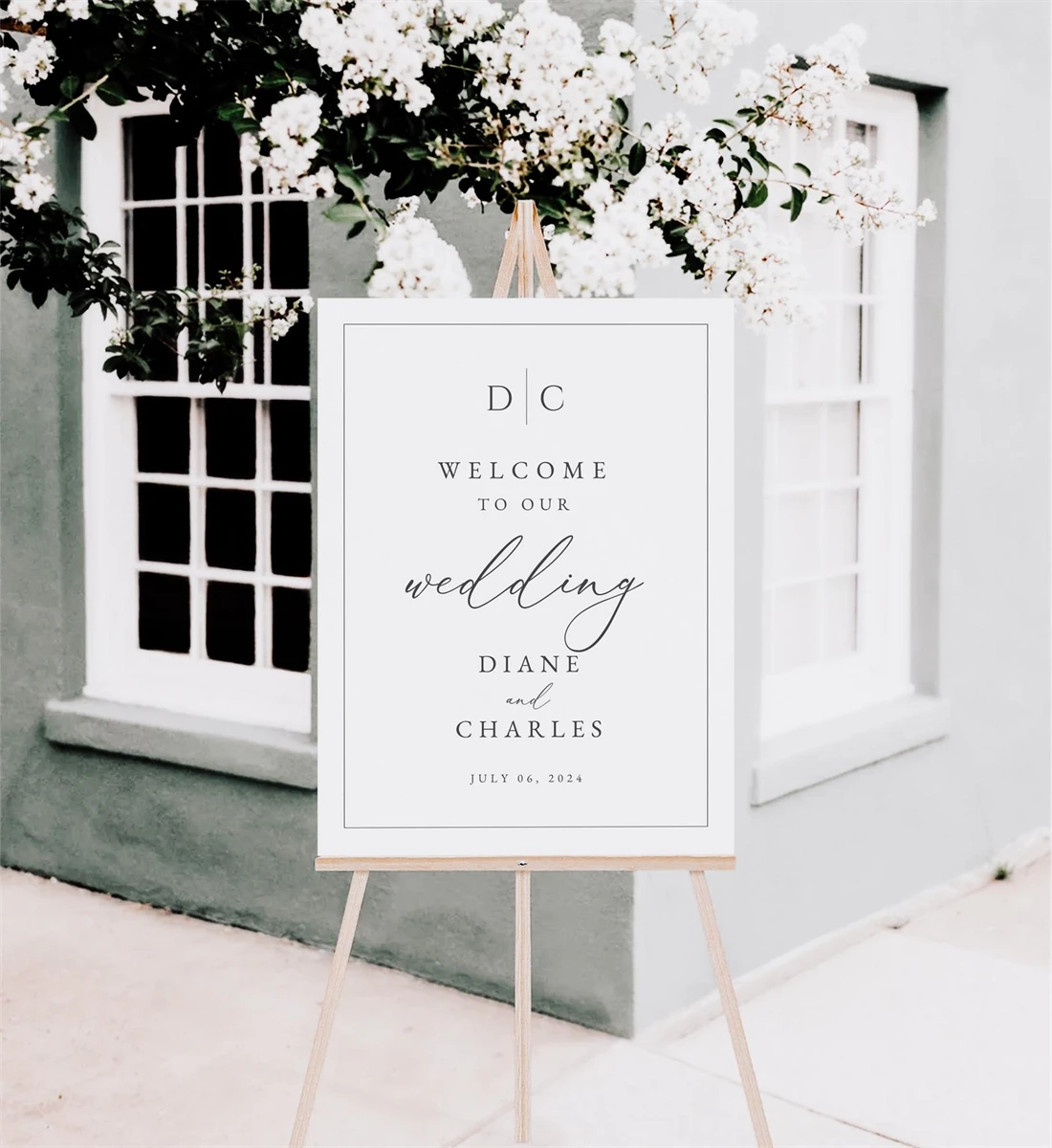 Wedding Welcome Sign Template, Monogram & Border,Canva